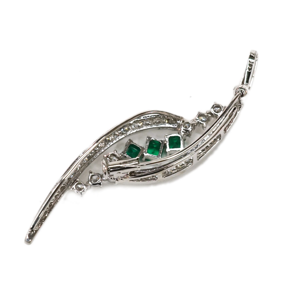 エメラルドとダイヤモンドがセッティングされた上品なブローチです。 洋服のアクセントになります。 お探しの方はこの機会にぜひいかがでしょうか。