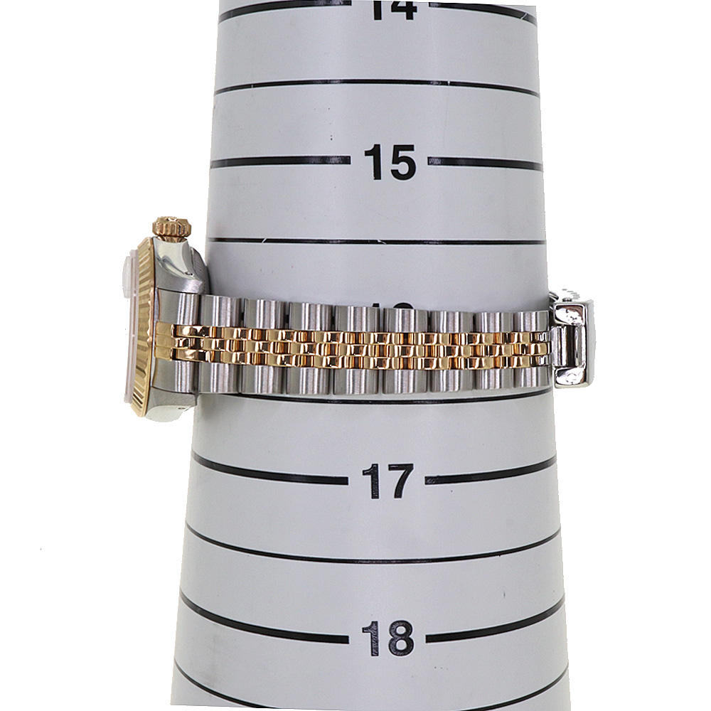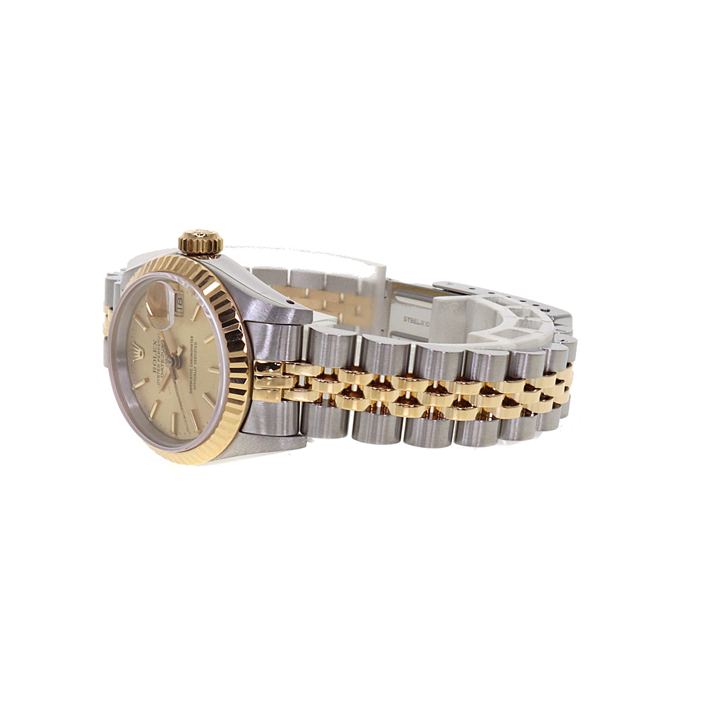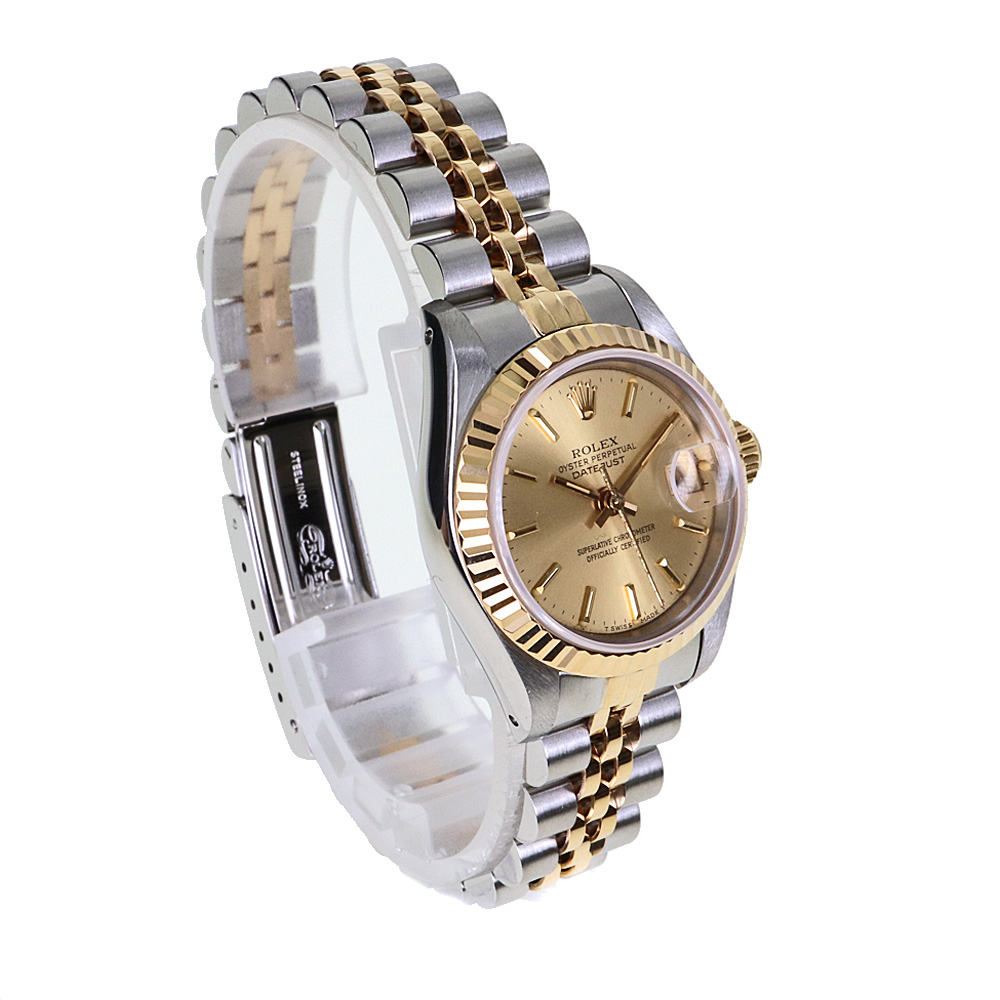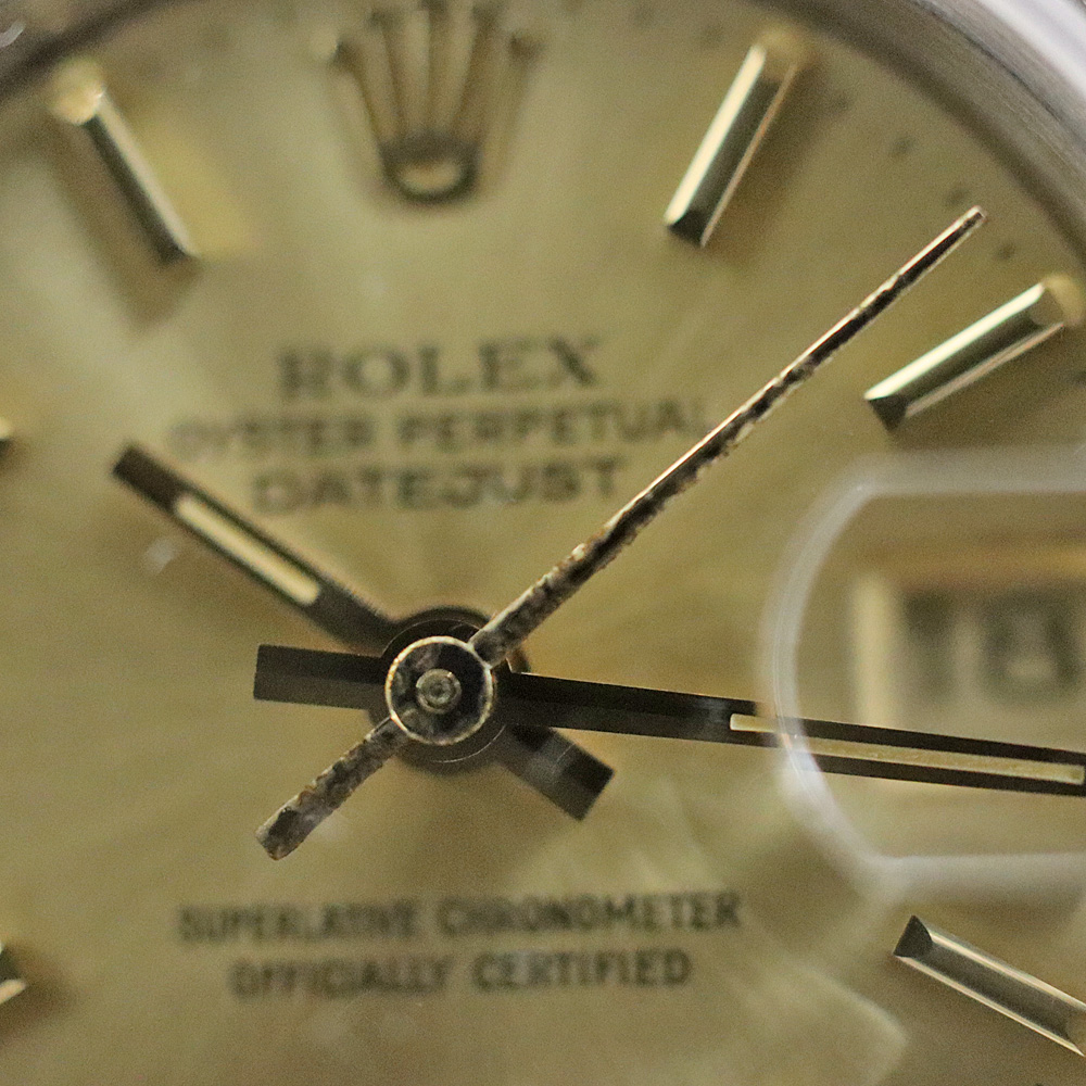 デイトジャストとは午前0時頃瞬時に日付が変わるデイトジャスト機構、全回転式ローターを搭載したパーペチュアル機構、ロレックス三大機構を搭載したモデルです。ゴールドの文字盤が非常に高級感があり、上品です。 この機会に是非いかがでしょうか。