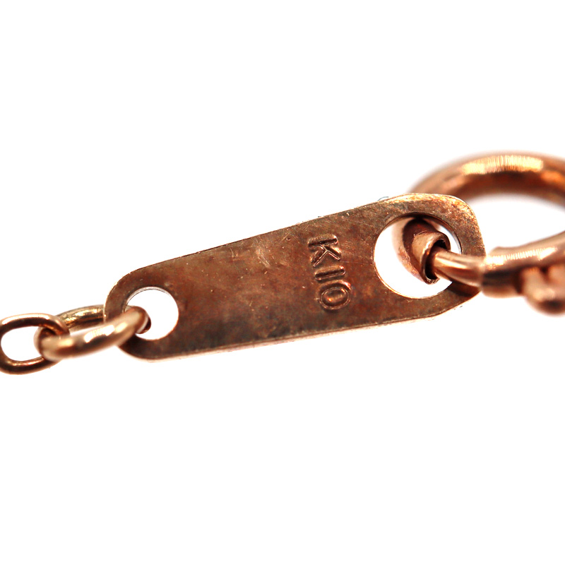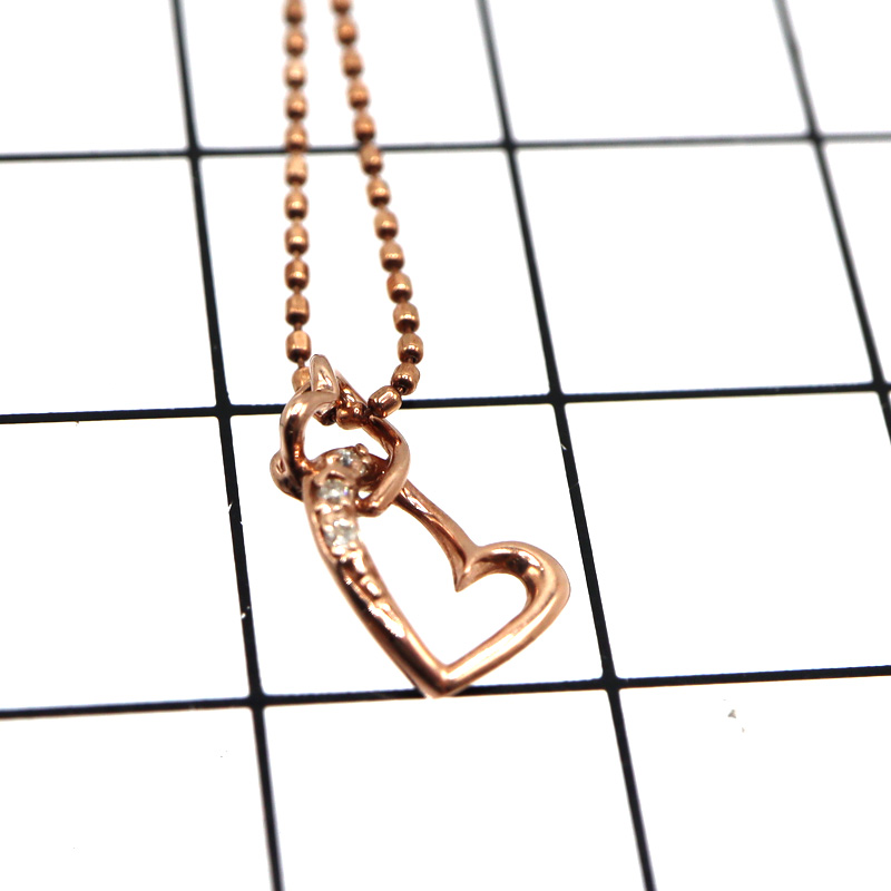 優しい色合いが魅力の10金ピンクゴールドに、上品なダイヤモンドが輝くネックレスです。