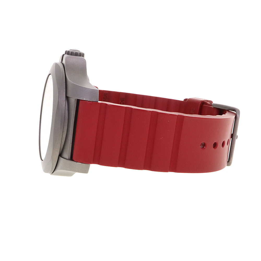 | 素材 | ケース:サンドブラスト加工チタン ブレス:ラバー ダイヤル:グレー文字盤 風防(ガラス):サファイアクリスタル |