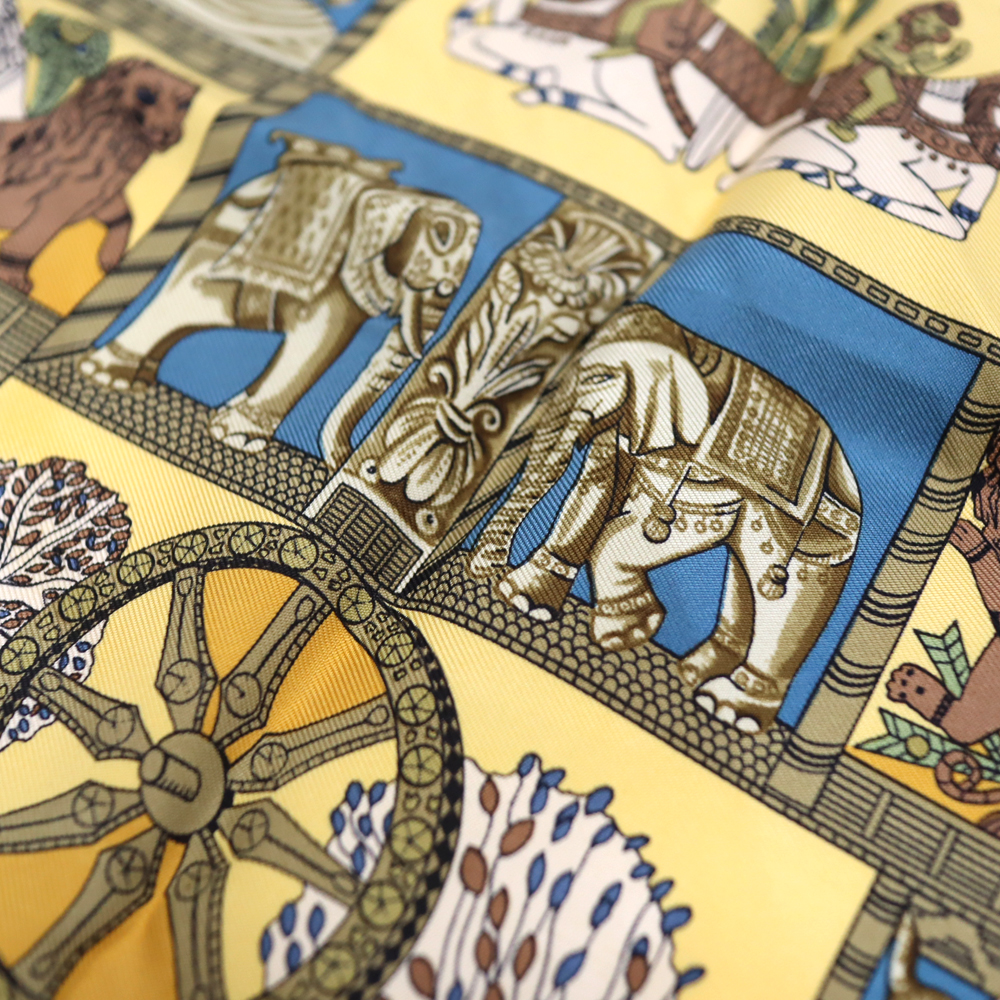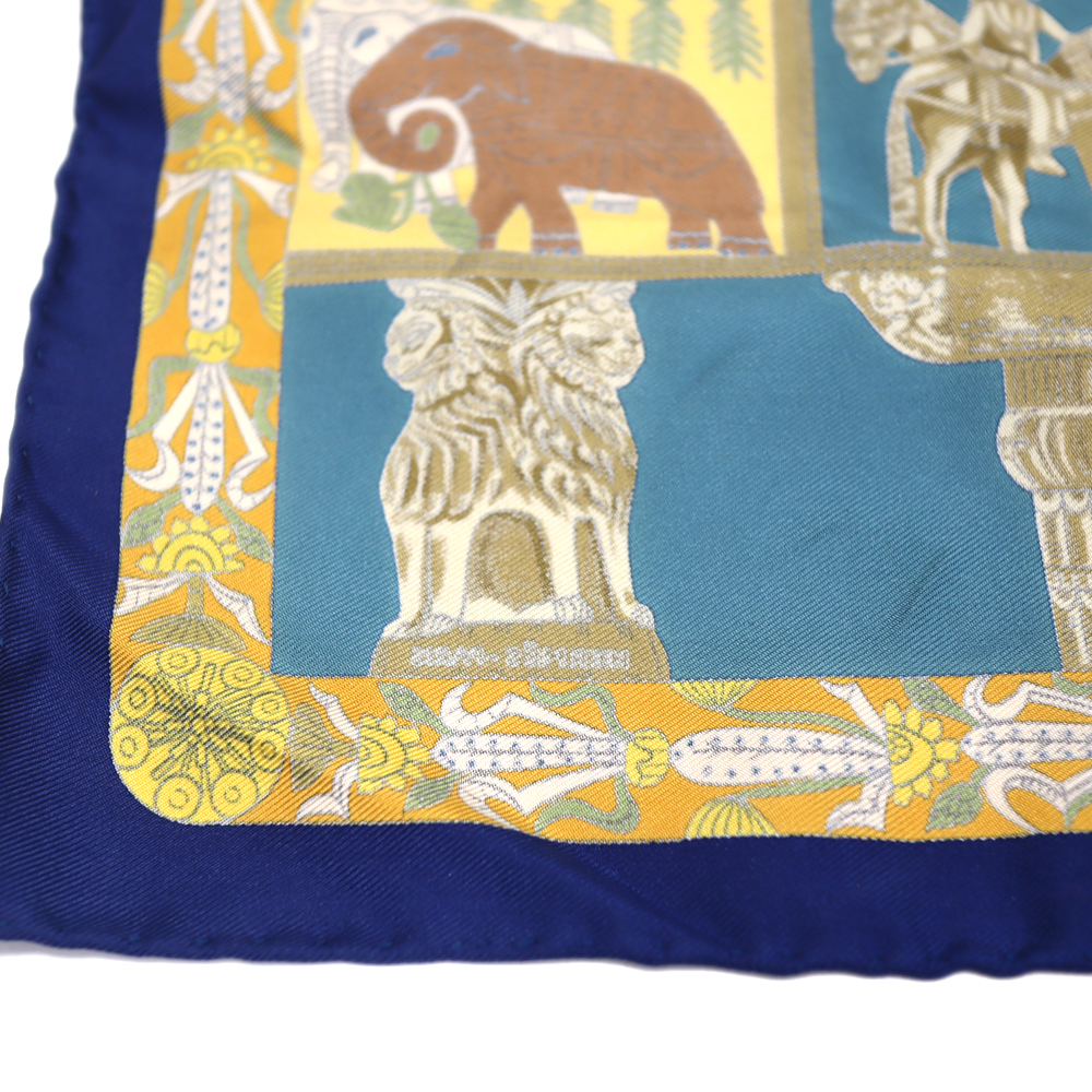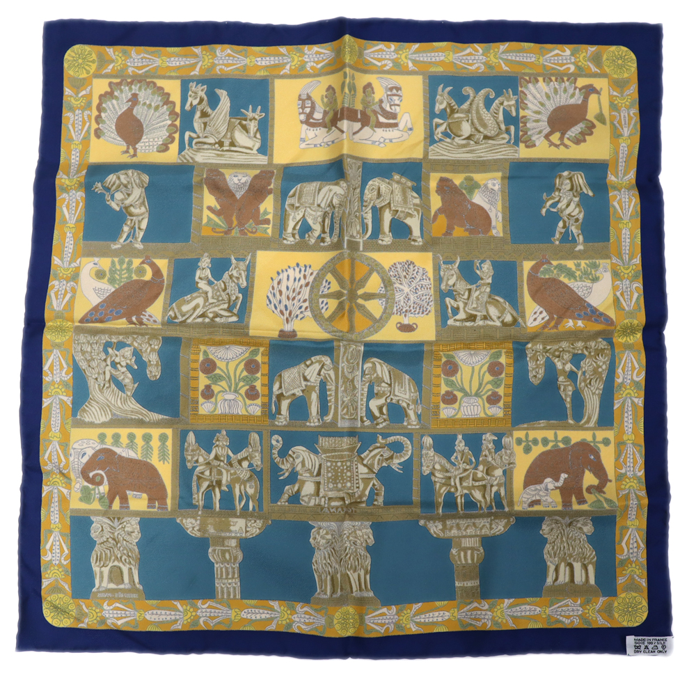 毎年新柄が発表され、コレクターも多いエルメスのスカーフ「カレ」です。 カレとは正方形を現すフランス語で、エルメスのカレ45とは1辺約45cmのスカーフ・ハンカチを指します。 艶やかなシルク生地に鮮やかな色使いが魅力的なアイテムです。 象やライオンなどがエキゾチックに描かれたアイテムです。コーディネートのアクセントに是非いかがでしょうか。 ※尚、当サイトの販売金額より店頭での販売金額の方をお安く設定させて頂いております。(一部セール品等を除く)