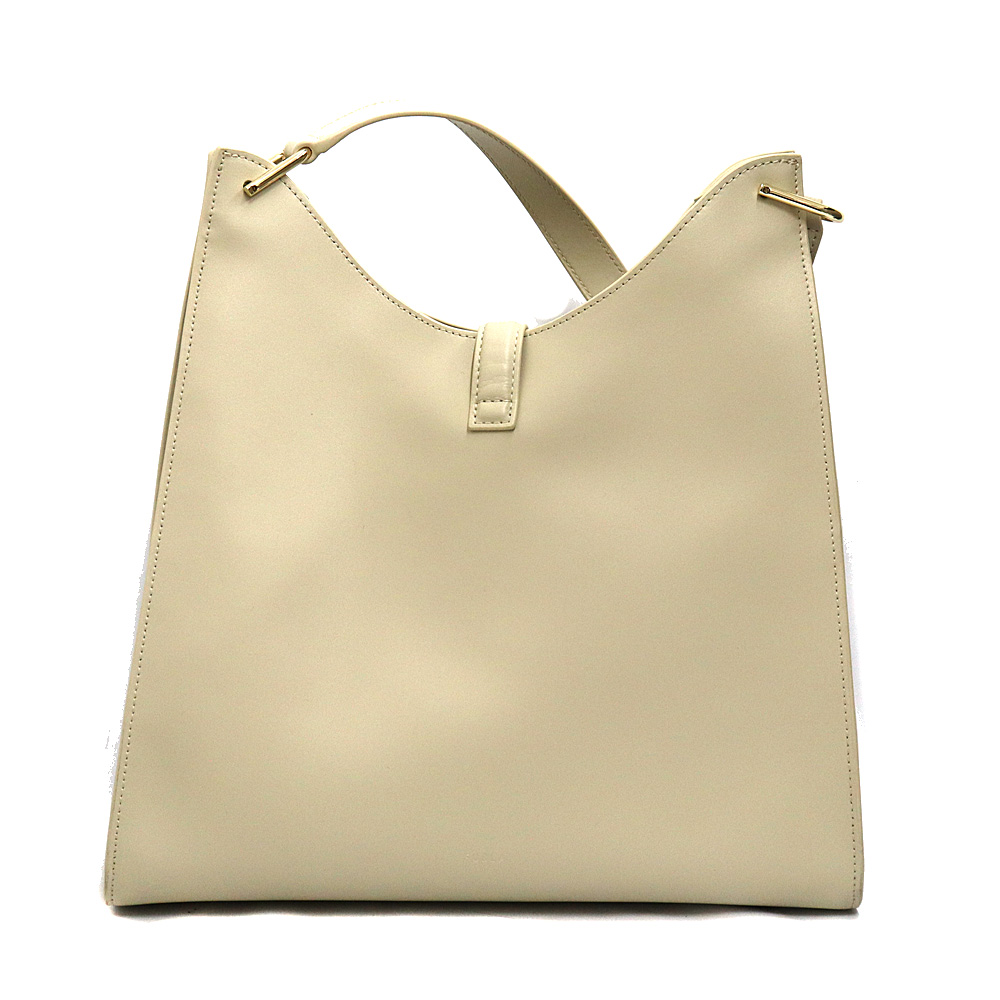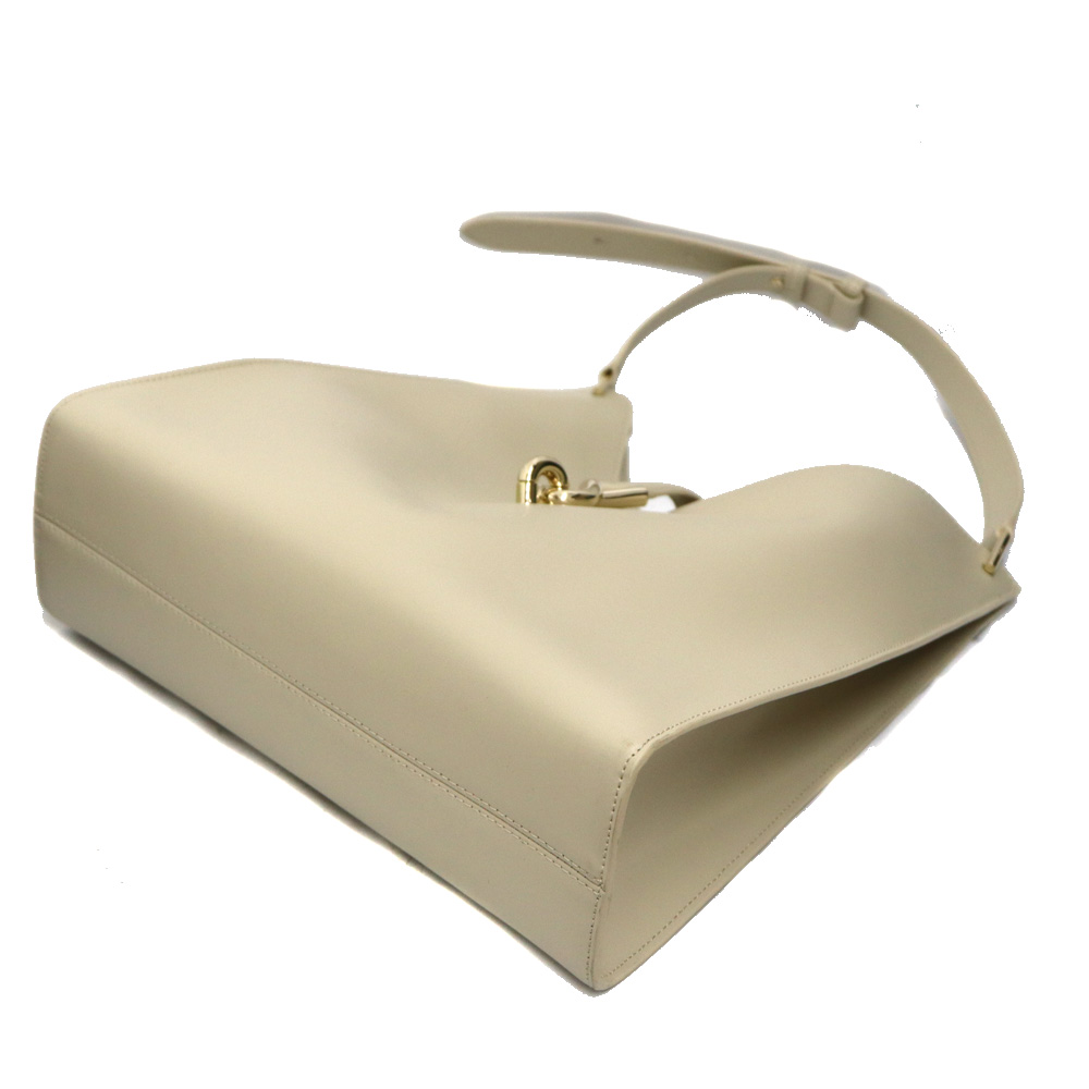 縦長の肩掛けタイプのバックになります。 お仕事バッグにも重宝しそうです。 アイボリーカラーが上品で開閉金具がワンポイントになります。 この機会にぜひいかがでしょうか。