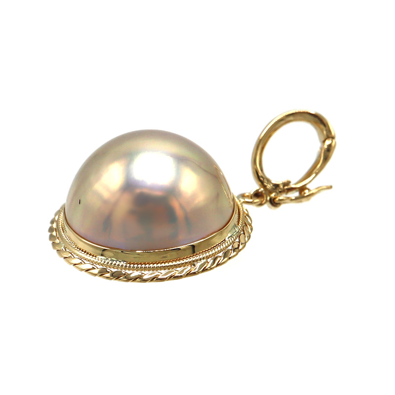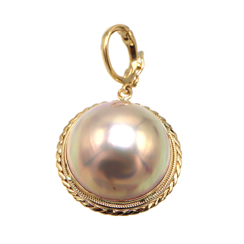 やわらかな光沢が魅力の養殖半形真珠を使用した、上品なペンダントトップです。