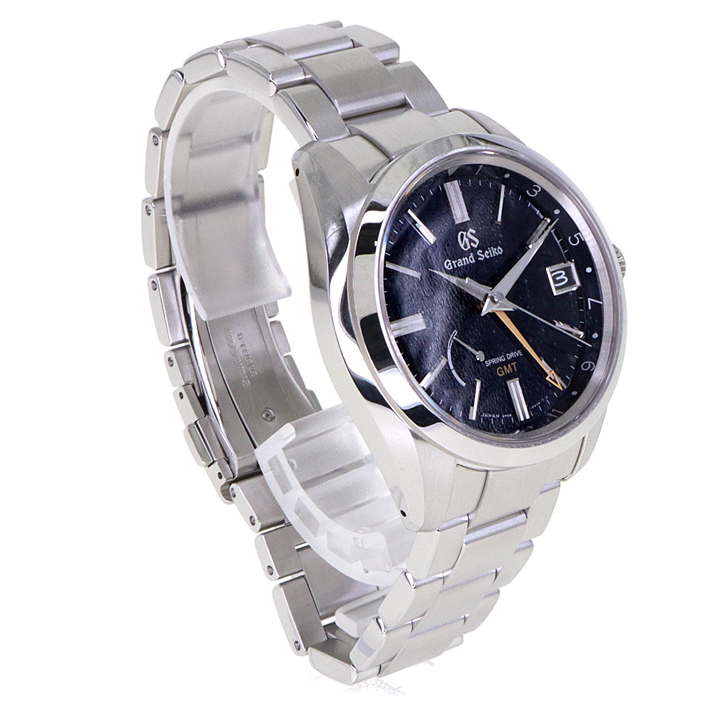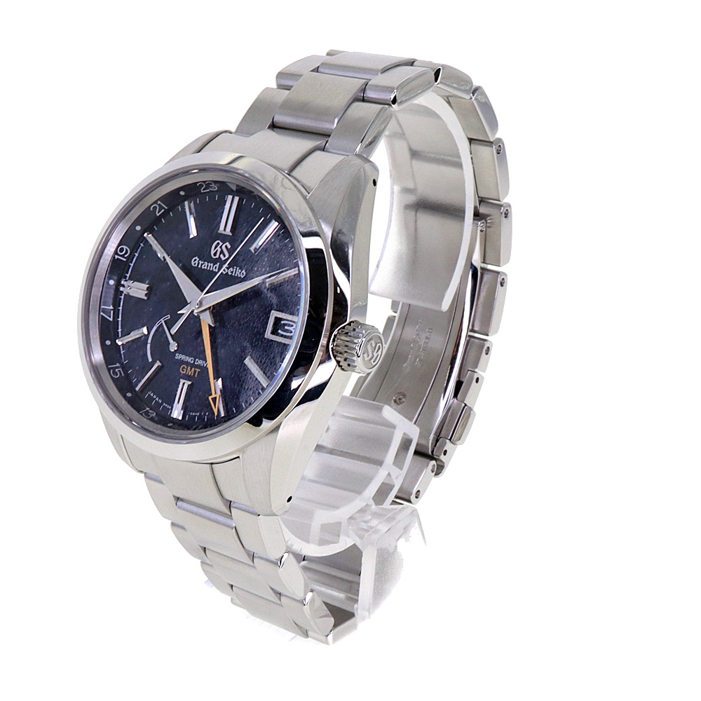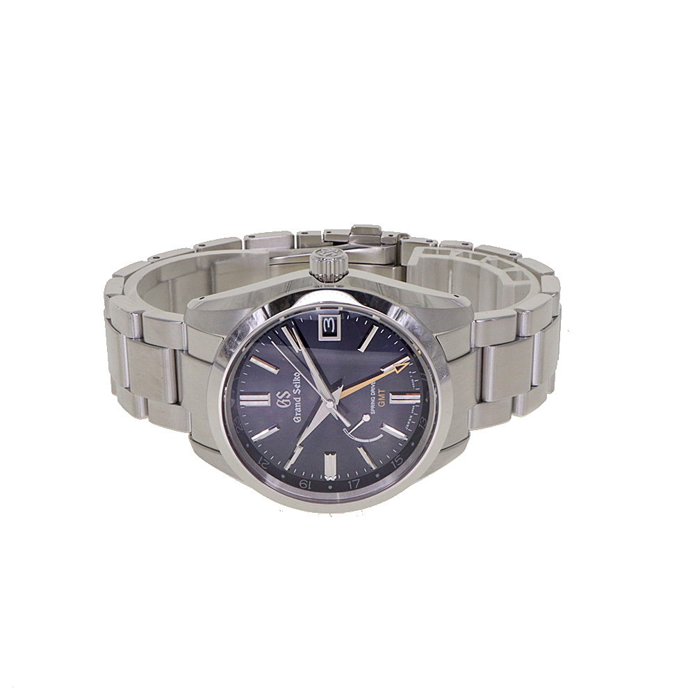 ダイヤルカラーは黒に近いミッドナイトブルーを採用し、グランドセイコーの王道デザインのケースと組み合わせたスプリングドライブGMTモデルです。 搭載されているスプリングドライブムーブメントは、ダイヤルの上をすべるように動く秒針が特徴の一つで、時の流れと調和するかのように自然に流れる秒針の動きは、ICの制御によって実現しています。 最大巻上時の持続時間は約72時間(約3日間)で、ダイヤル左下のパワーリザーブ表示で残りの持続時間を確認できます。 この機会に是非いかがでしょうか。