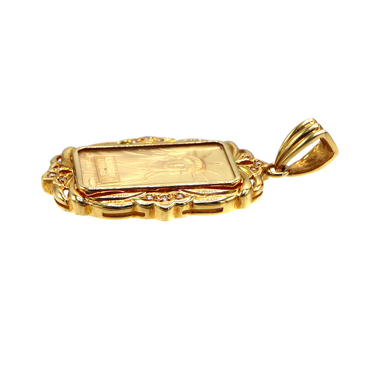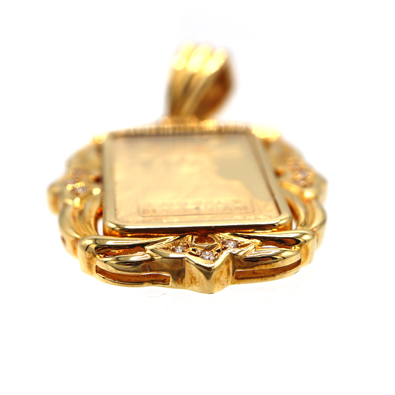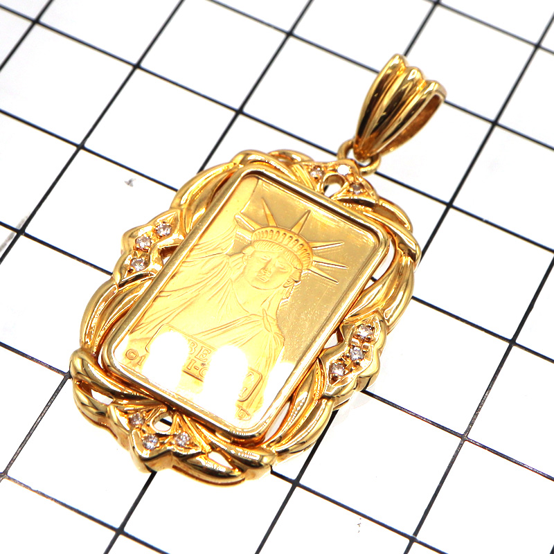 K18イエローゴールドの枠に、リバティ金貨(5g)がセットされた高級感あふれるペンダントトップです。