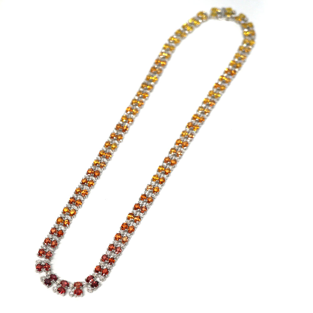 赤色、橙色、黄色のグラデーションになっているサファイアがとてもオシャレなお品です。