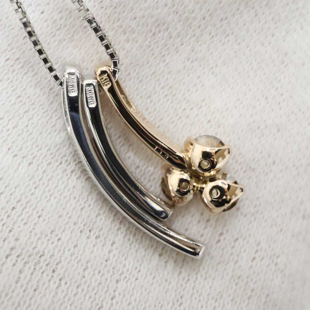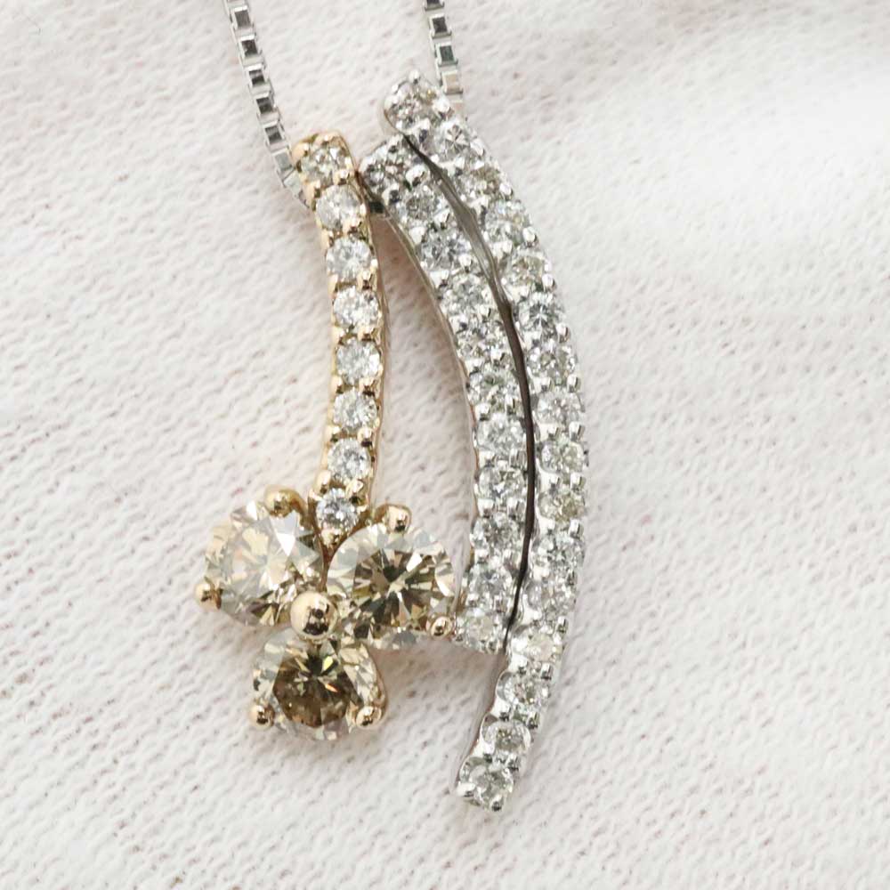 ホワイトゴールドとフラワー部分のイエローゴールドが組み合わせたデザインです。 首元を華やかにしてくれるお品物です。 この機会に是非いかがでしょうか。