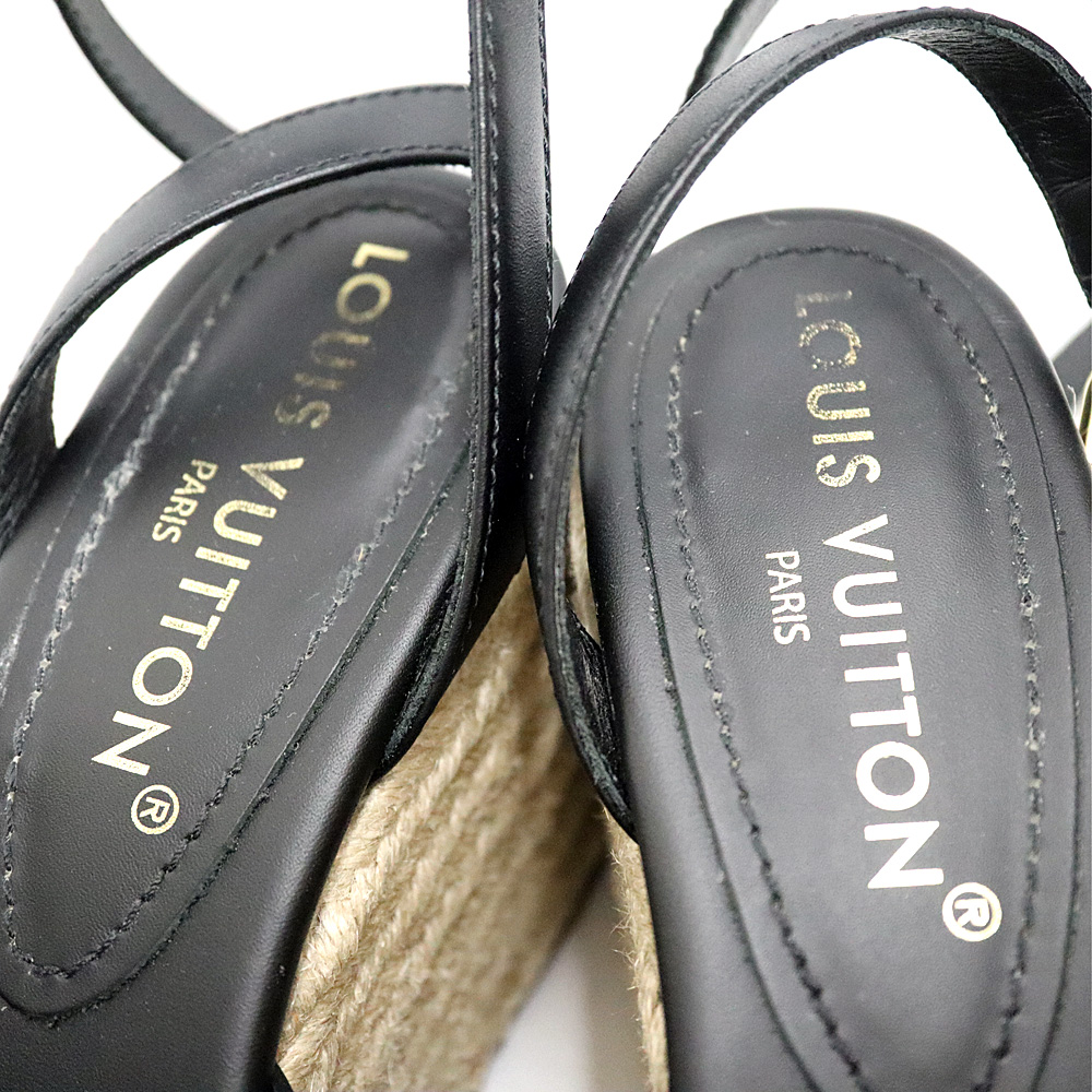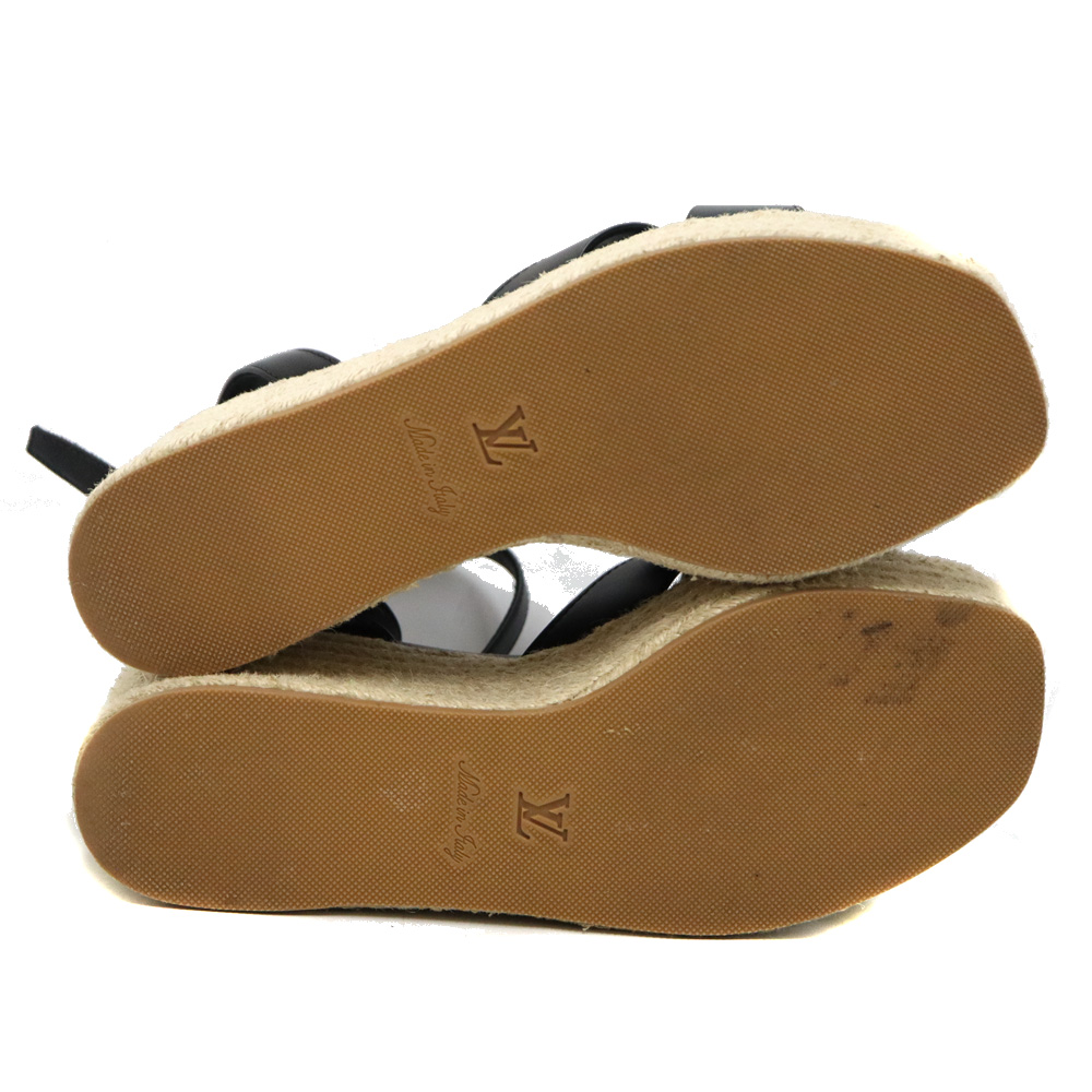 足が疲れにくいとされるウェッジソールデザインです。 レザーでかたどられたLVロゴがお洒落なアイテム。 この機会に是非いかがでしょうか。