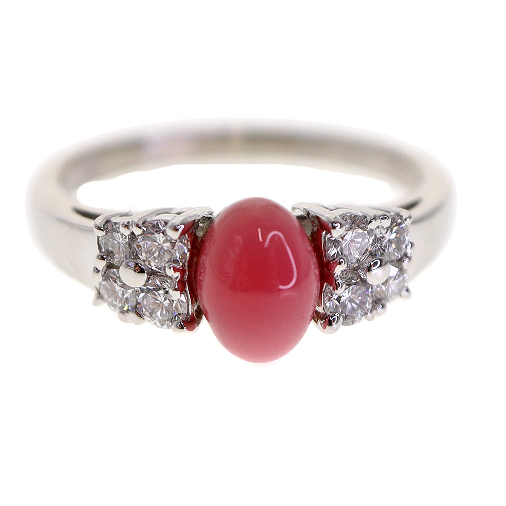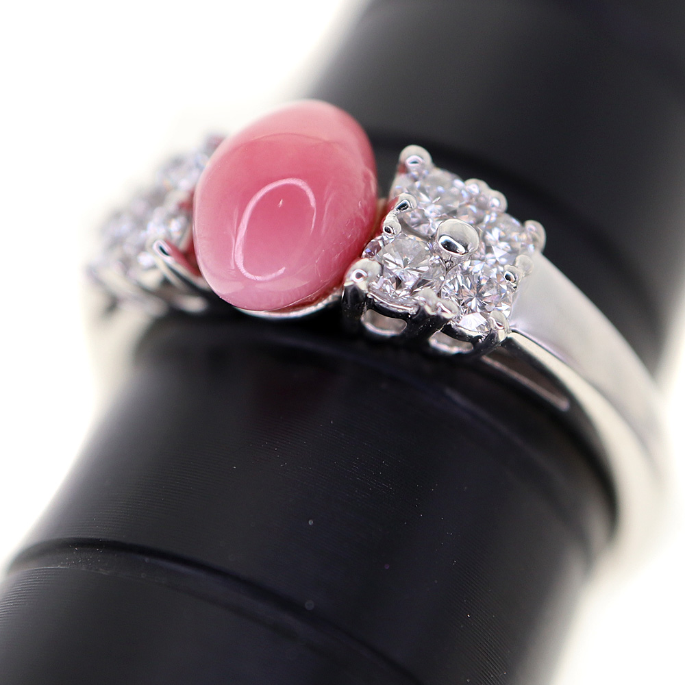 薄ピンクのかわいらしい色合いがなんとも素敵なリングになっています。 お手元を華やかにしてくれるアイテムです。 この機会に是非いかがでしょうか。