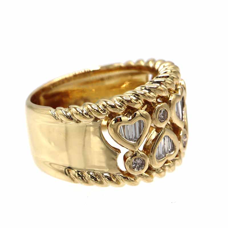 上質なK18ゴールドに、トータル0.52カラットのダイヤモンドをあしらった贅沢なリング。
