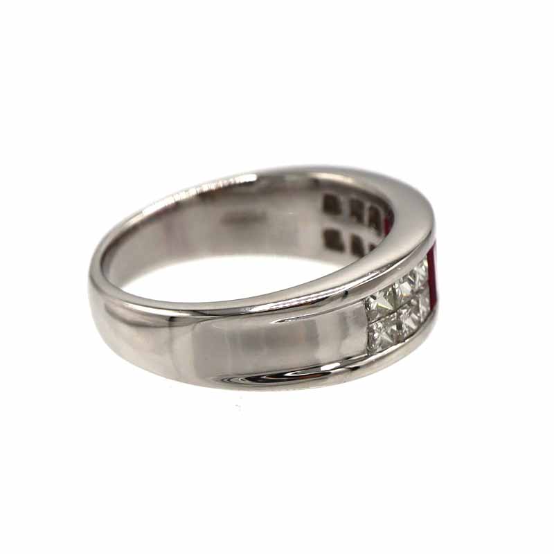深みのある赤色が魅力的なルビーをあしらった、Pt900製の上品なリングです。
