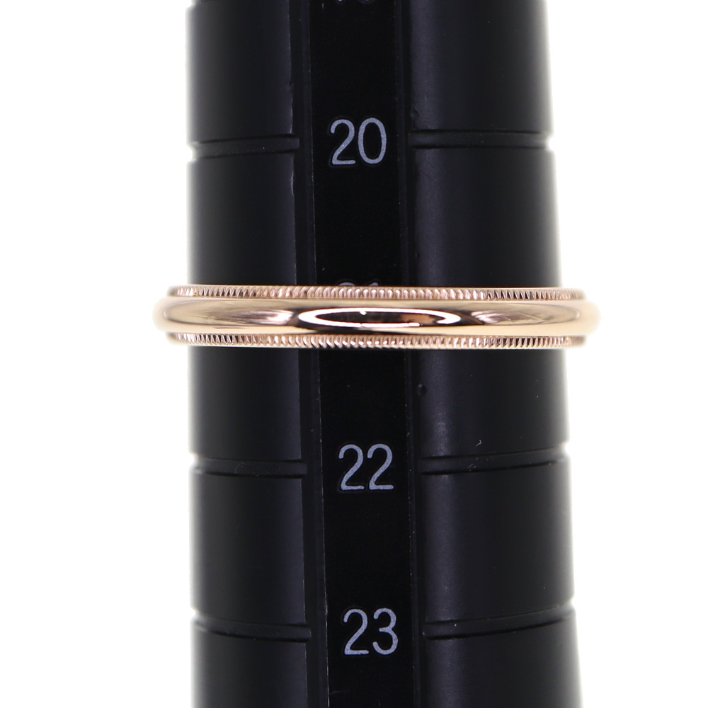 ピンクゴールド製のデザインリングです。 サイドに細かなデザインが施されたシンプルながらも上品なリングとなっております。 細目デザインとなり、重ね付けなどしてもいいですよ。 この機会に是非いかがでしょうか。