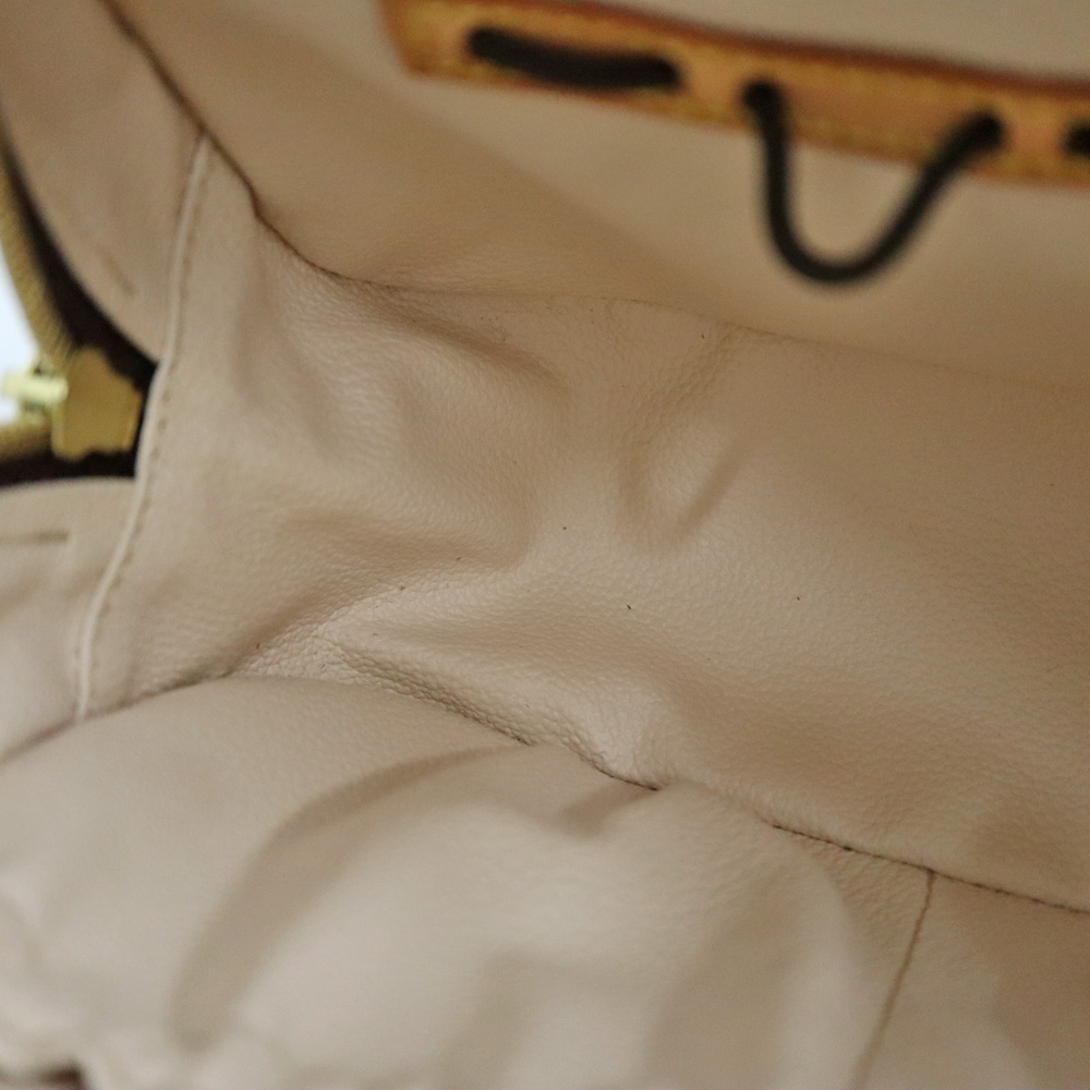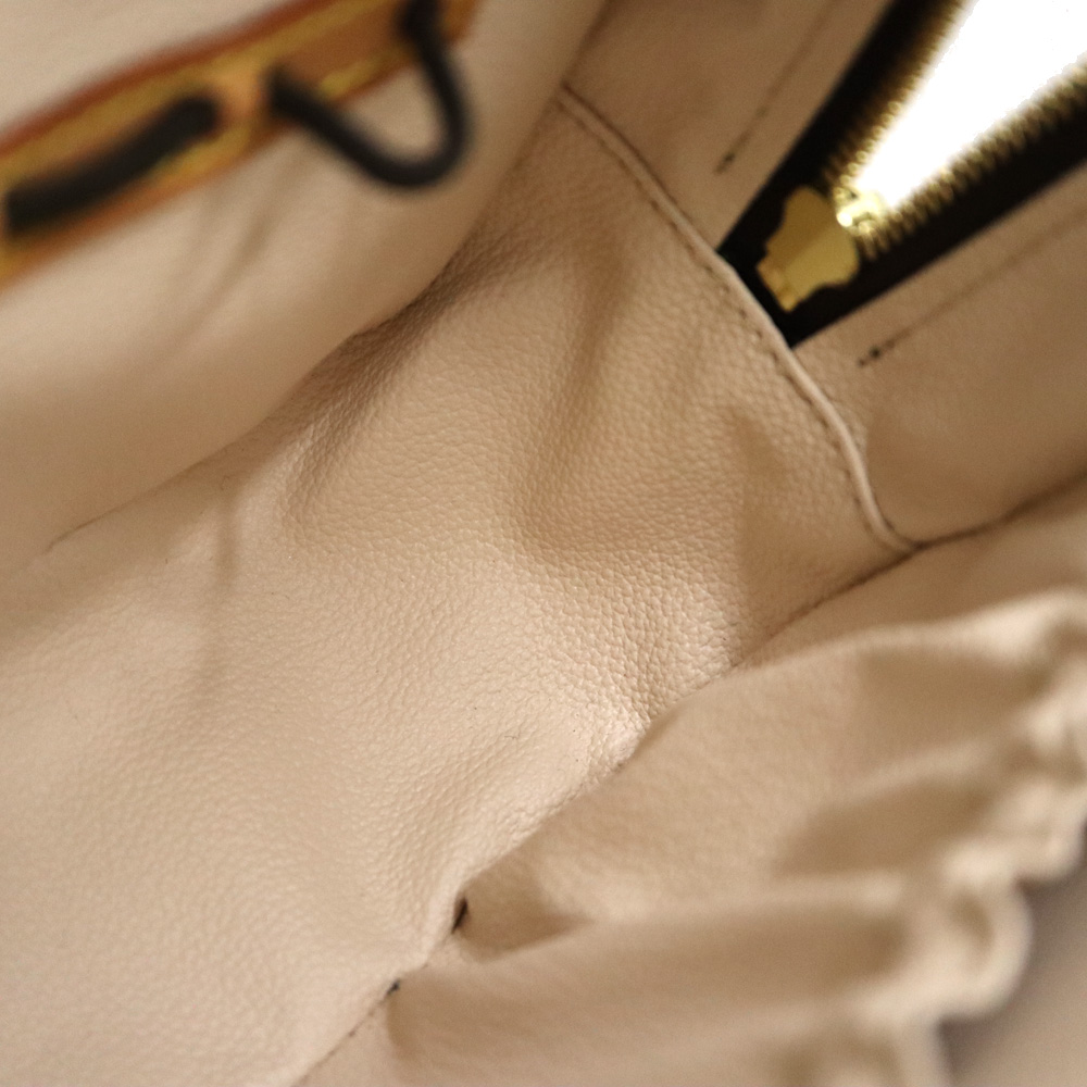 | 商品状態 | ■ハンドル型崩れ・ヤケ・黒ずみがあります。 ■ショルダー型崩れ・若干ヒビ・ヤケがあります。 ■開閉ファスナー若干かためです。 ■バッグ内古いニオイがあります。 ■バッグ内比較的キレイです。 ※店頭にて同時販売中の為展示による多少のキズ・汚れには予めご了承ください。 |
