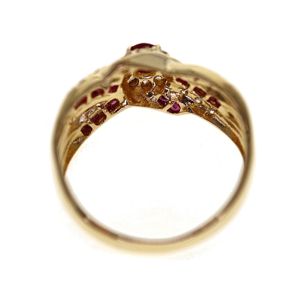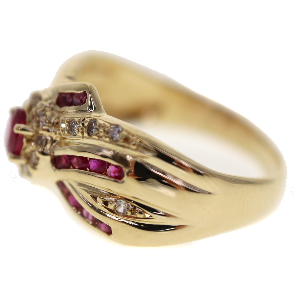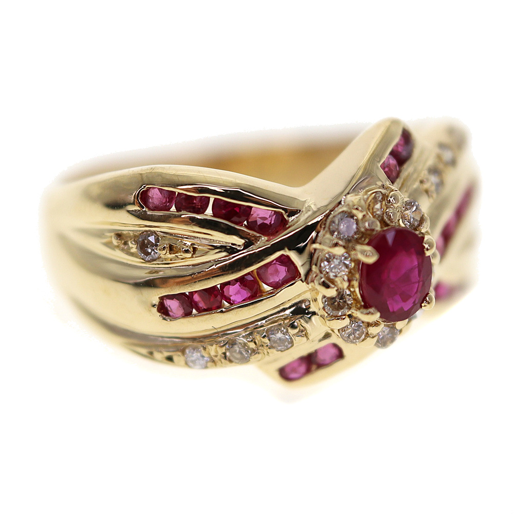 まるでリボンのようにも見えるルビーのまわりに、 ダイヤモンドを散りばめたリングです。 この機会にぜひいかがでしょうか。