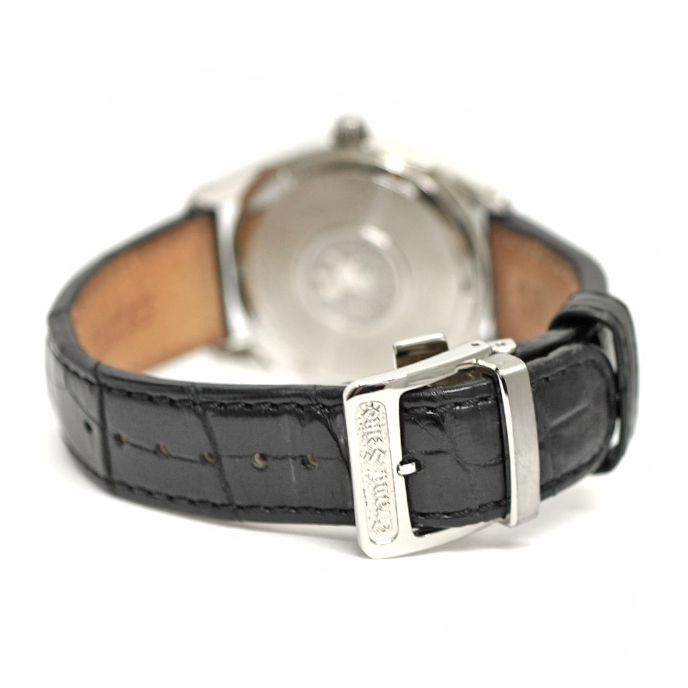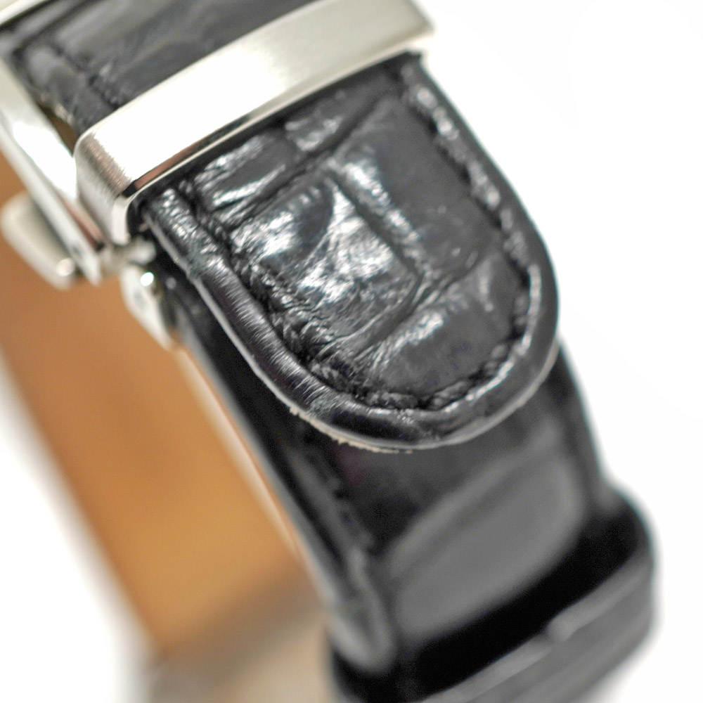 | 素材 | ケース:SS(ステンレススチール) ブレス:クロコレザー(ブラック) ダイヤル:白 ガラス:サファイア |
