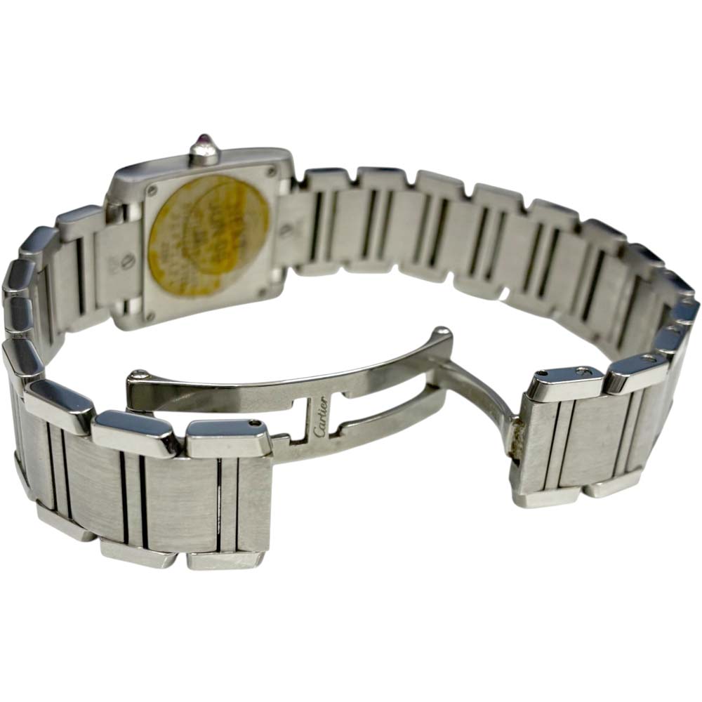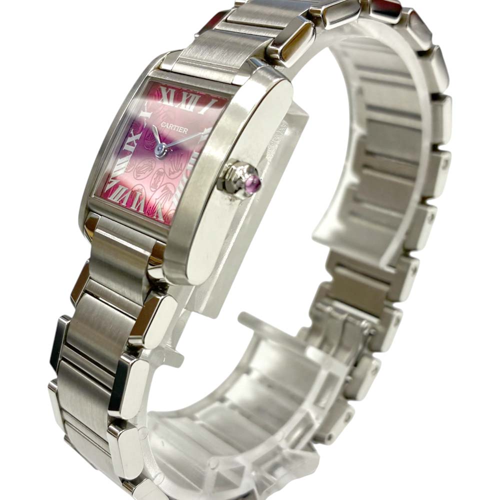| 商品説明 | カルティエのタンクフランセーズSM(モデルナンバーW51030Q3)は、優雅でクラシックなデザインの時計です。このモデルはステンレススチールのケースとブレスレットを使用し、シルバーオパーリン文字盤が特徴です。クォーツムーブメントを搭載し、日常の使用に適した機能性を備えています。タンクシリーズ特有の直線的なフォルムと、エレガントな外観が人気です。