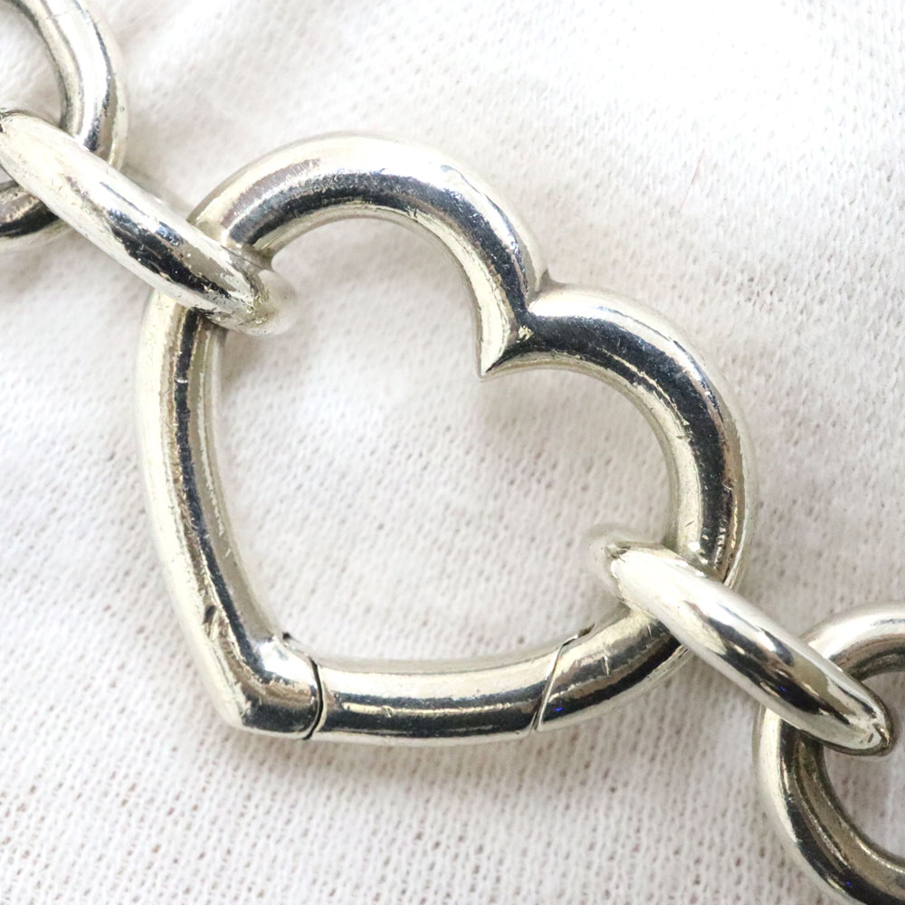 留め具がオープンハートのモチーフとなったチェーンブレスレットです。 太めチェーンで存在感のあるアイテムとなっております。 この機会に是非いかがでしょうか。