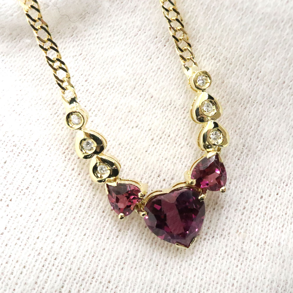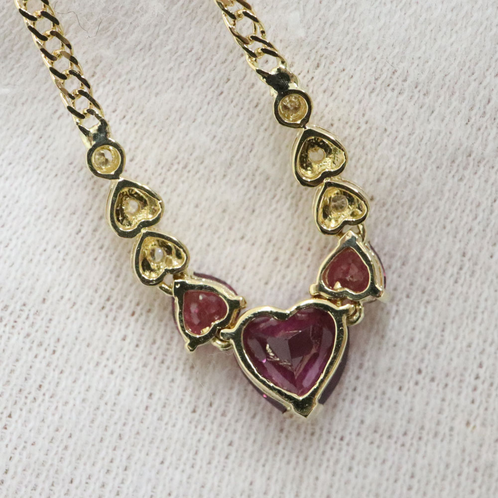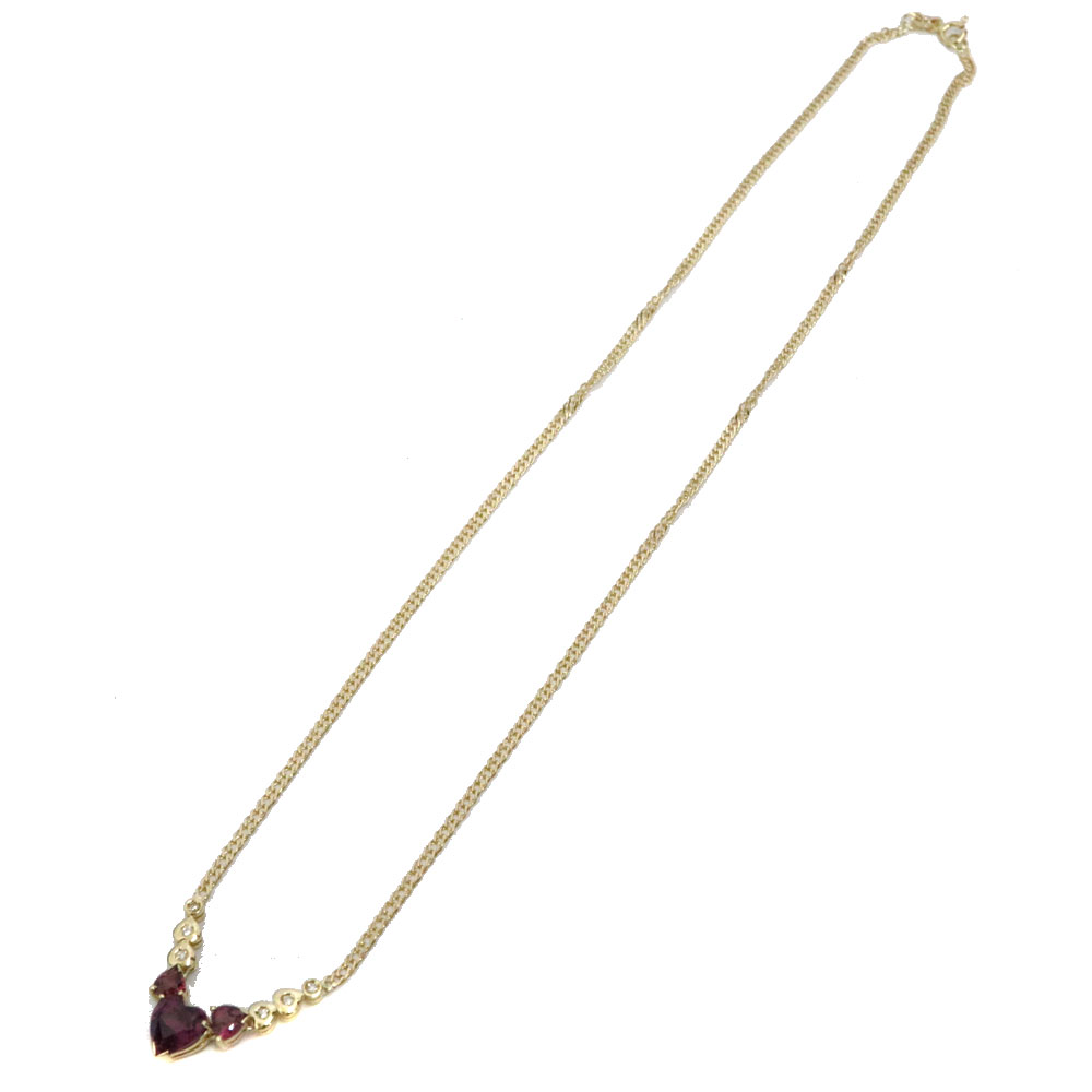ロードライトガーネットがはめ込まれたネックレスです。 ハートモチーフが可愛らしいアイテムとなってとります。 この機会に是非いかがでしょうか。