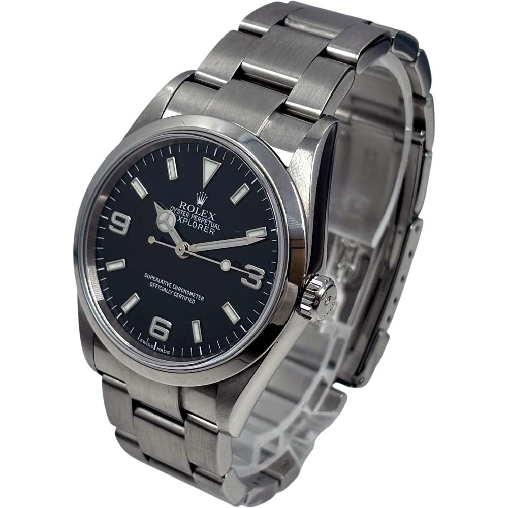| 商品説明 | ロレックスのエクスプローラー 1、モデル番号114270は、クラシックでありながら洗練されたデザインの腕時計です。このモデルはステンレススチール製で、高い耐久性を持つケースとブレスレットが特徴です。文字盤はブラックで視認性が高く、アラビア数字が3、6、9の位置に配置されています。ロレックス独自の自動巻きムーブメントを搭載しており、日常生活での高い信頼性があります。シンプルながらエレガントなデザインで、多くの方に愛用されています。