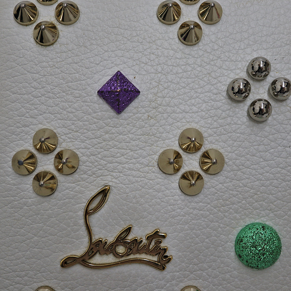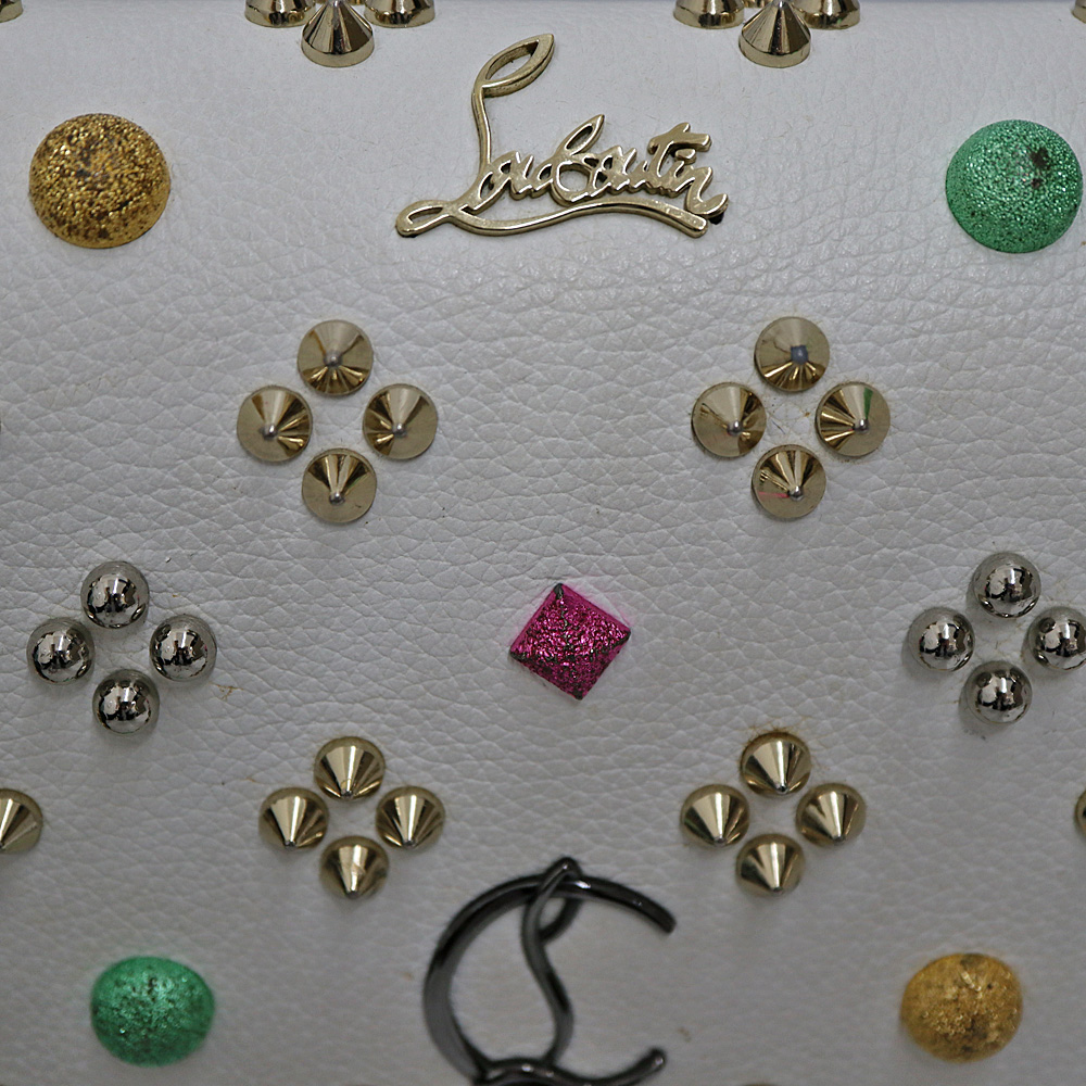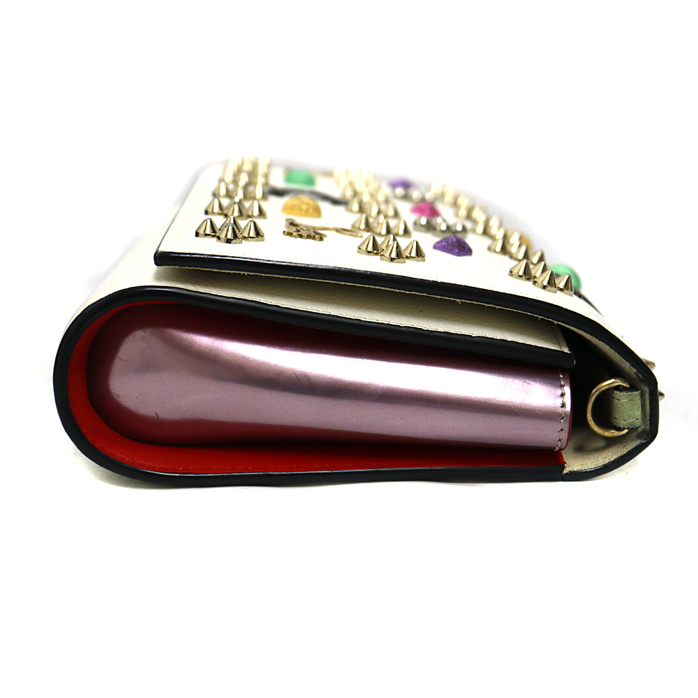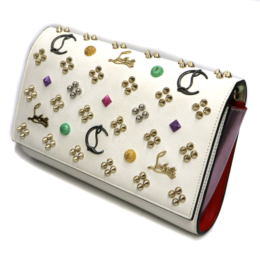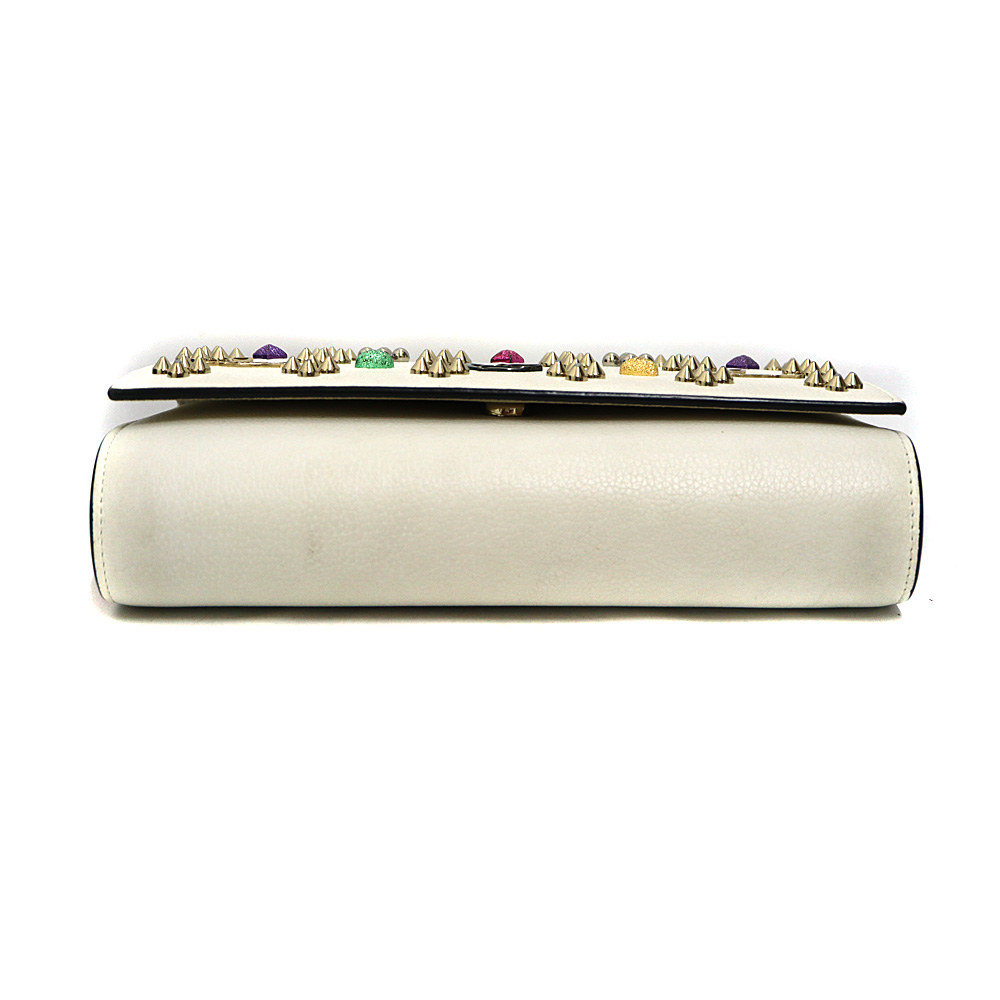 ホワイトベースにスタッズとグリッターの色付きのスタッズを施した チェーンウォレットです。こちらひとつでお出かけできます。 お探しの方はこの機会に是非いかがでしょうか。