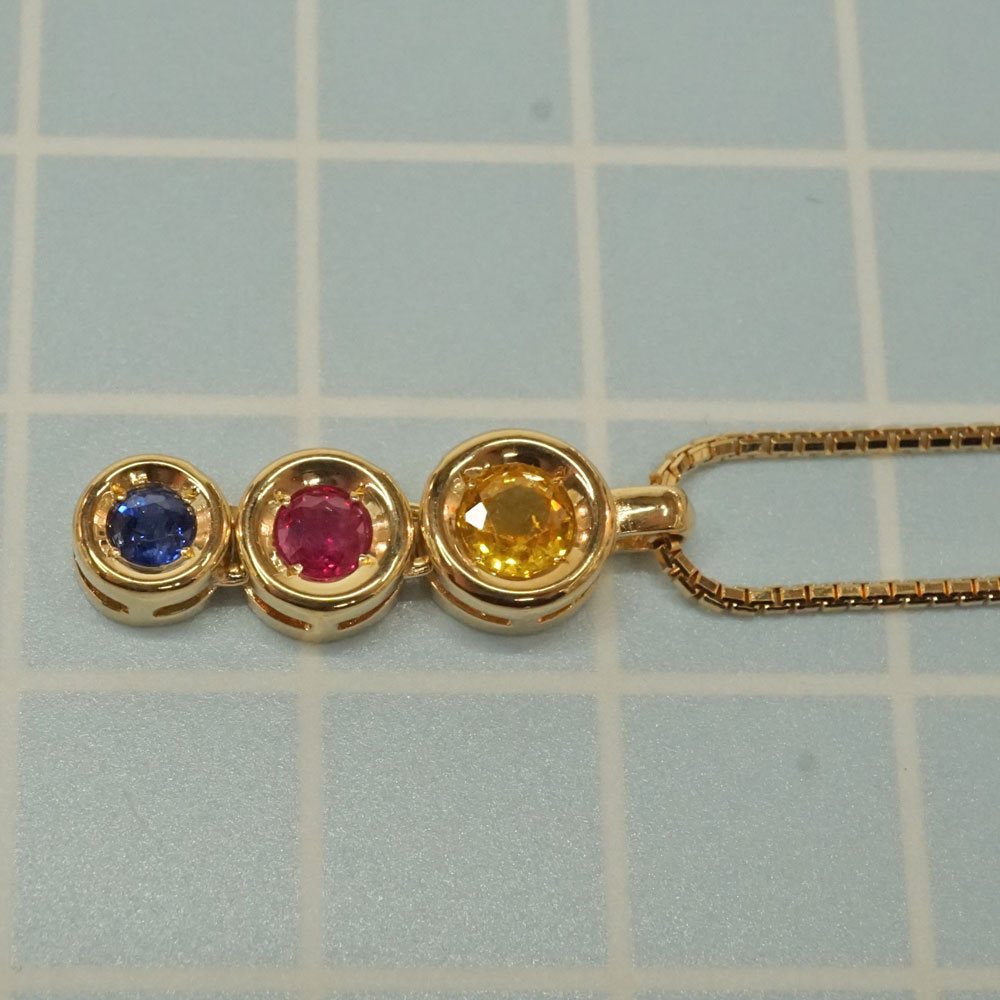 三色の石が付いたシンプルかつ上品なネックレスです。 お探しの方はこの機会に是非いかがでしょうか。