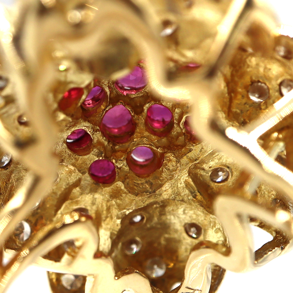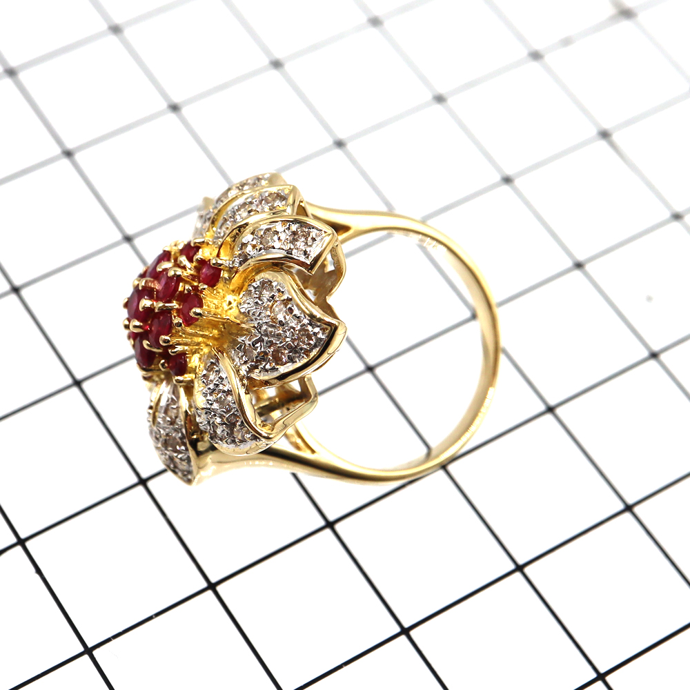 鮮やかなルビー1.15ctと、繊細に煌めくダイヤモンド0.65ctを贅沢にあしらった、華やかさあふれるK18リングです。