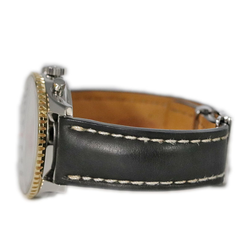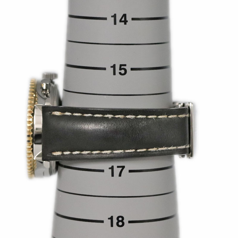| 素材 | ケース:SS(ステンレススチール)×K18イエローゴールドベゼル ブレス:レザーストラップ ダイヤル:ブラック 風防(ガラス):サファイアクリスタル |