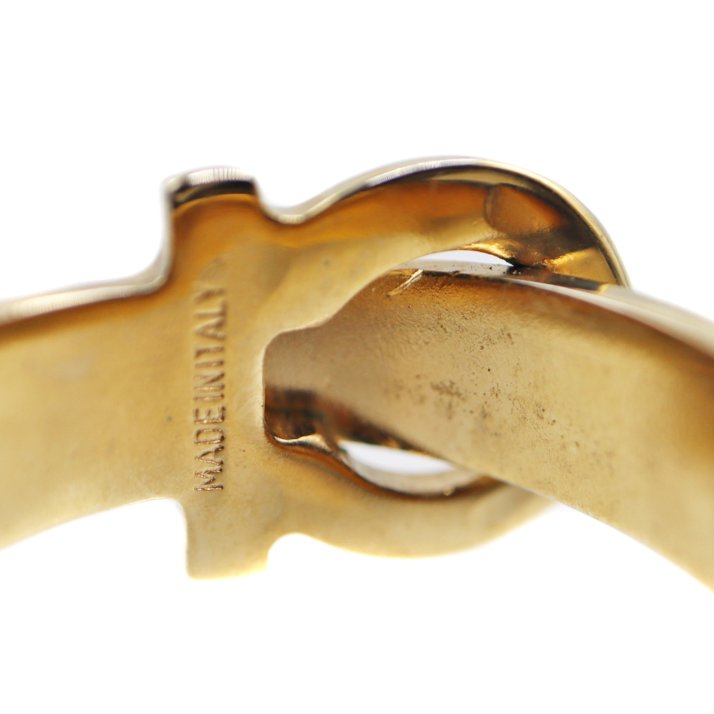 フェラガモの象徴的なモチーフ「ガンチーニ」をデザインに取り入れた、エレガントなスカーフリングです。