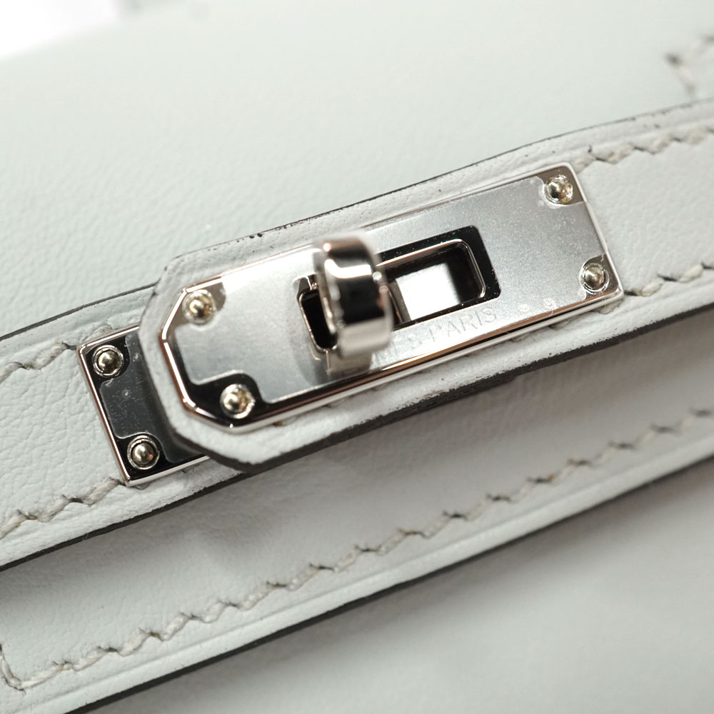 人気のケリーバッグのモチーフ。 上品なブルーグラシエのカラーです。 お探しの方はこの機会にぜひいかがでしょうか。