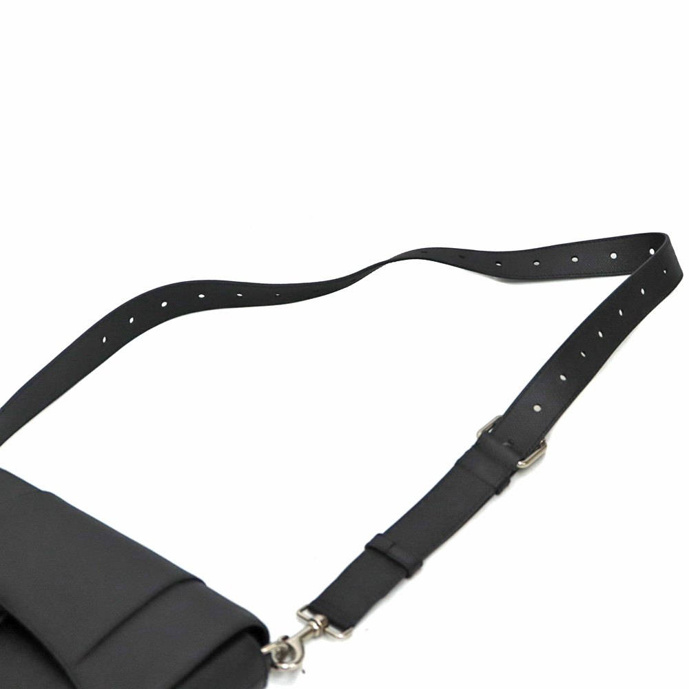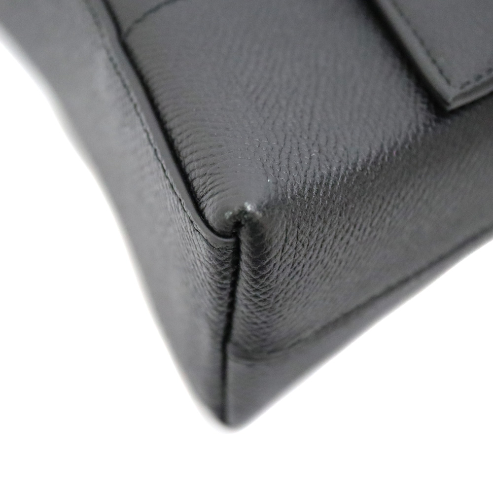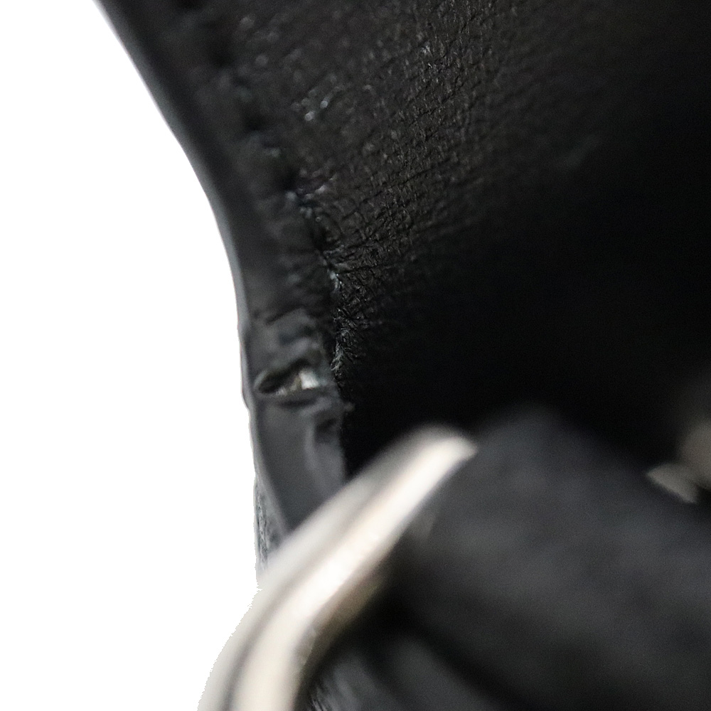 ブラックレザーに開閉金具に[B]のロゴ金具がアクセント。 形も奇抜すぎないのに一度見たら記憶に残る不思議な感覚。 コンパクトに収納しスマートに持ち運べるサイズ感がおすすめ。 この機会にぜひいかがでしょうか。