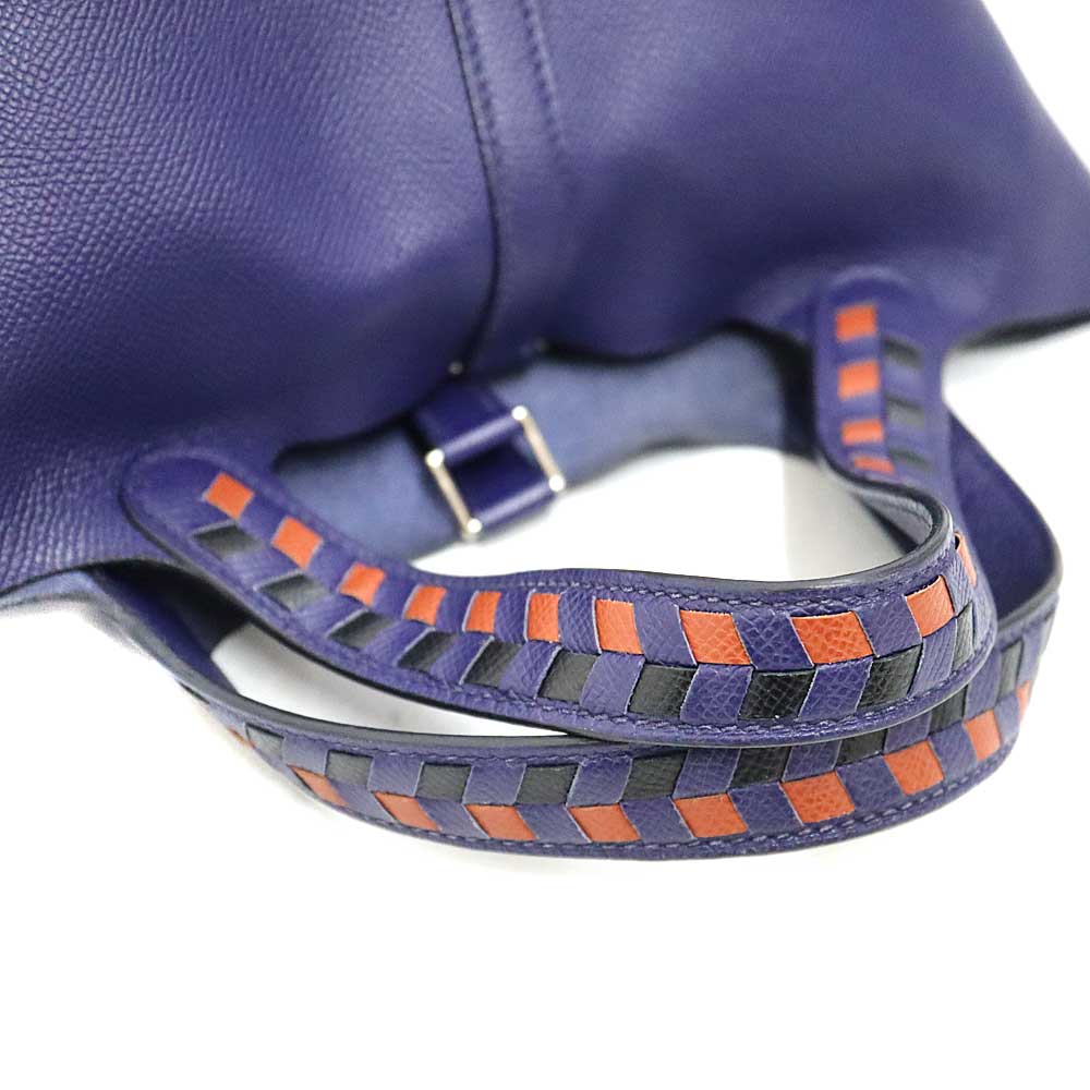 鮮やかで上品なブルーブライトンをメインカラーに、ハンドルにはアクセントとしてカプシーヌカラーが編み込まれています。 高品質なレザーの質感とエルメスならではのトレサージュ技法が、シンプルなフォルムに奥行や個性をプラス。 PMサイズならではの使いやすさと軽やかさを備え、デイリー使いにぴったりです。 この機会に是非いかがでしょうか。