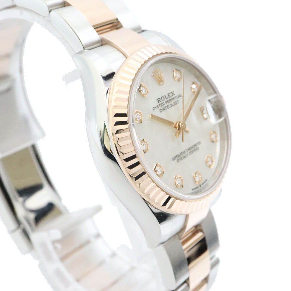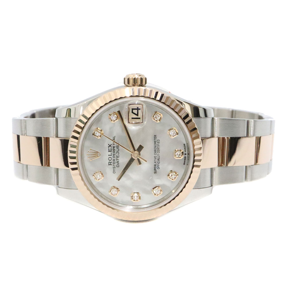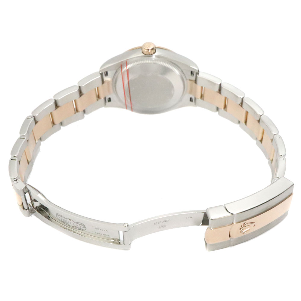 ロレックス三大発明である、デイトジャスト機構、オイスターケース、パーペチュアルが備わった定番人気のモデルです。 キャリバー2236を搭載しており、パワーリザーブ55時間、100m防水など機能面でも優秀です。 こちらは、ステンレス×K18エバーローズゴールドのコンビモデルに、10Pダイヤとマザーオブパール文字盤が組み合わさった豪華なデザインのお時計です。 一本で華やかな印象となり、変わらないデザインは年代問わず長く愛用頂けます。 お探しの方はこの機会にぜひいかがでしょうか。
