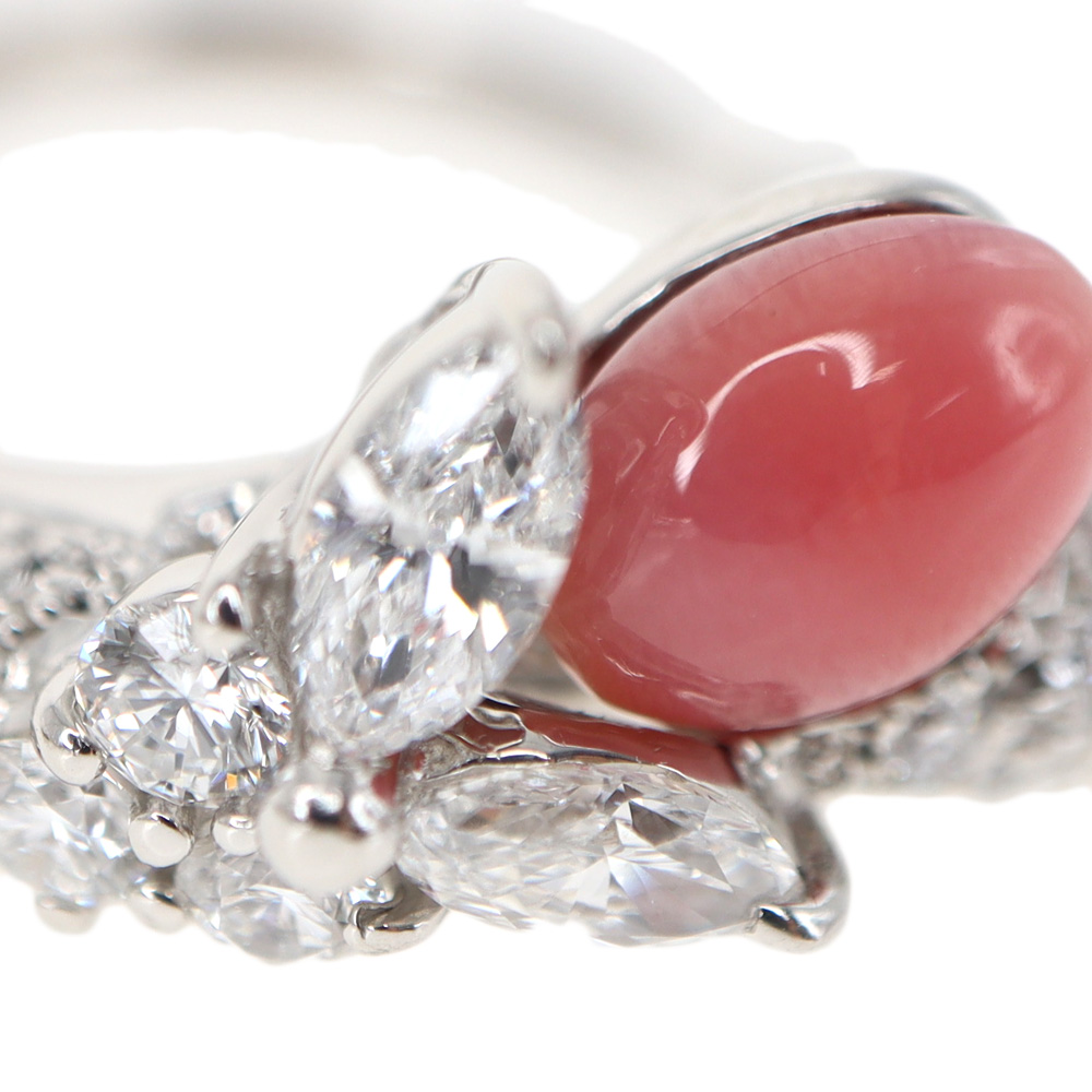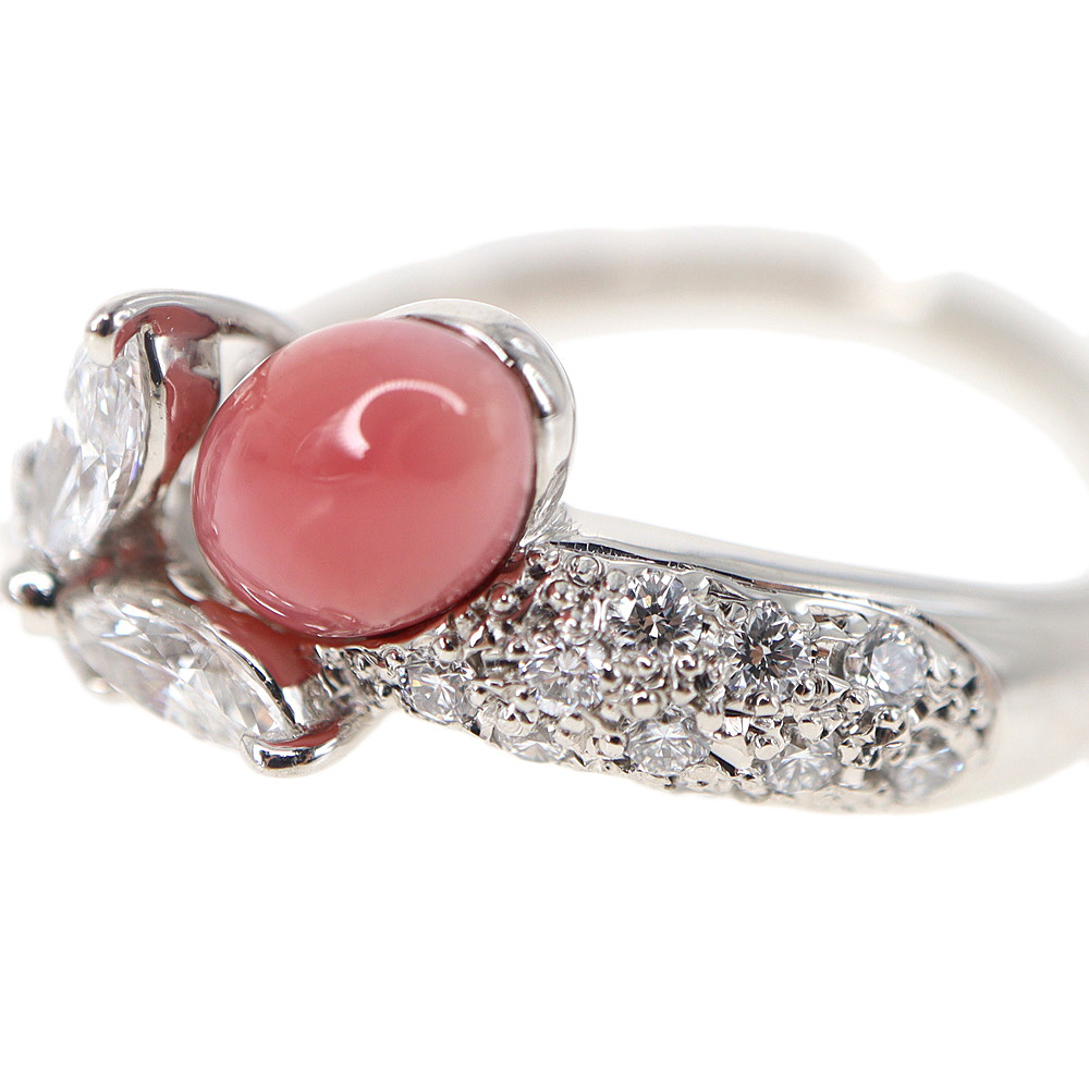 | 商品説明 | Pt900【プラチナ900】コンクパール ダイヤモンドリングのご紹介です。 パールの中でも非常に希少なコンクパールがセッティングされた可愛らしいデザインのリングです。 コンクパールはカリブ海に生息するコンク貝(ピンクガイ)からごくまれに産出される天然真珠。 養殖が非常に難しく、市場での出回りも少ない石となっており、採取量は1万~1万5千個に1つといわれています。 火焔模様が特徴的なコンクパールですが、今回のお品物にもしっかりと火焔模様が認められておりなかなか手に入れる事のできないお品となっております。 白や黄色、オレンジ・茶色等さまざまなカラーのコンクパールがありますが、ピンク色の色味が比較的濃いお品ですのでコレクターの方にもおすすめです。 お探しの方はこの機会にぜひいかがでしょうか。
