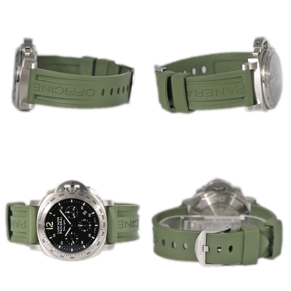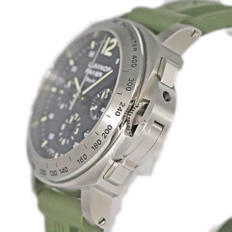パネライの象徴でもあるリューズプロテクターに、加えクロノグラフ機能を搭載しており、高い実用性・デザイン性を有します。