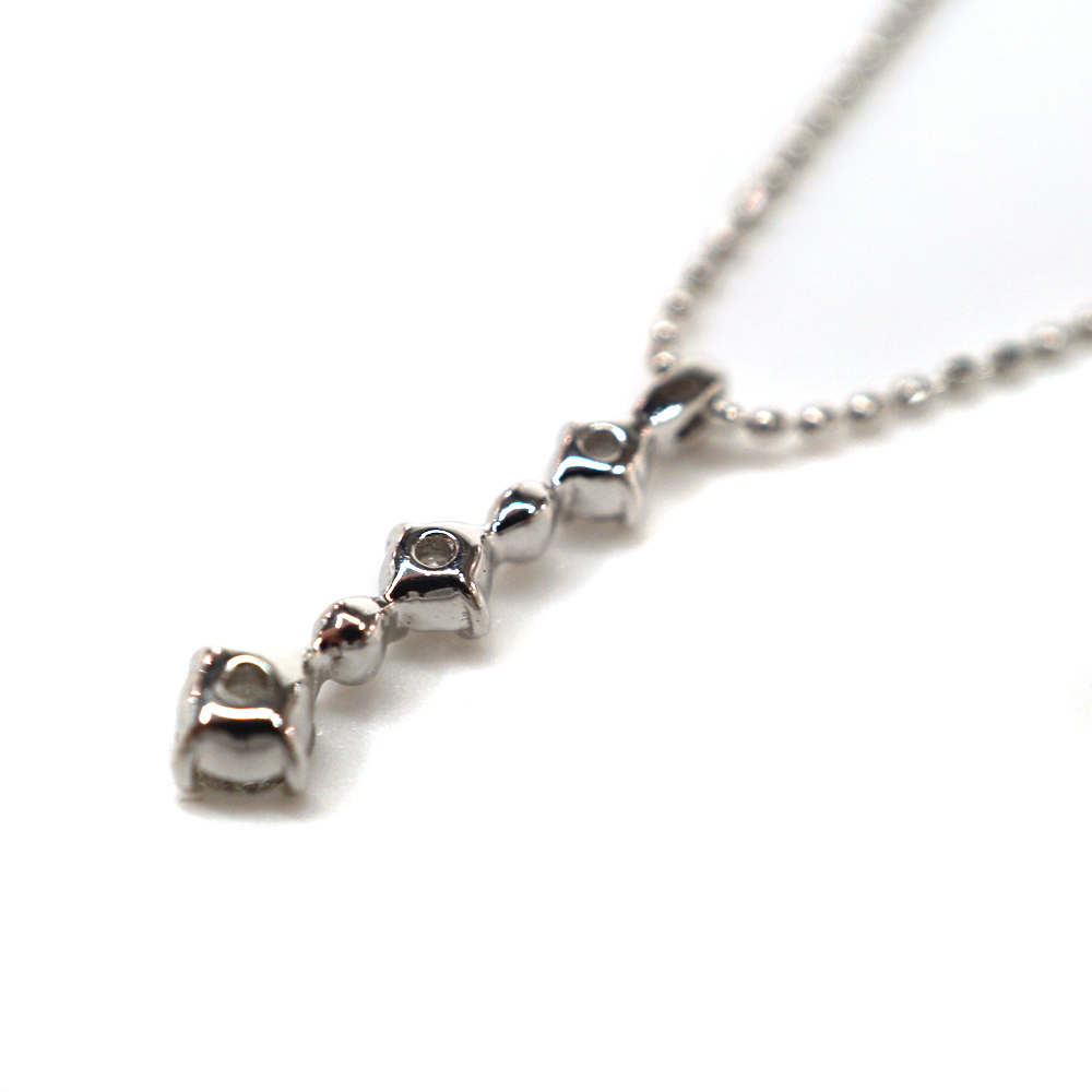 縦3連にサイズ違いのダイヤモンドが配置された、小ぶりなネックレスです。 お探しの方はこの機会に是非いかがでしょうか。