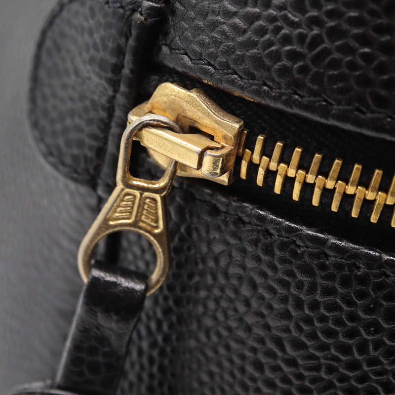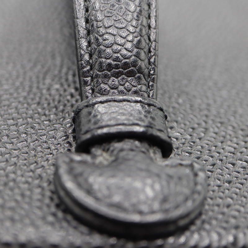 キャビアスキンのレザーが高級感漂うお鞄です。