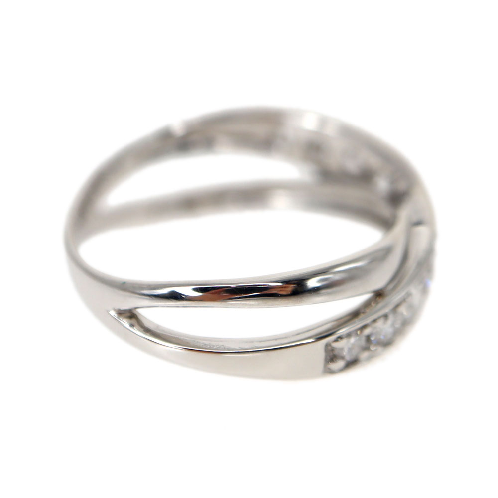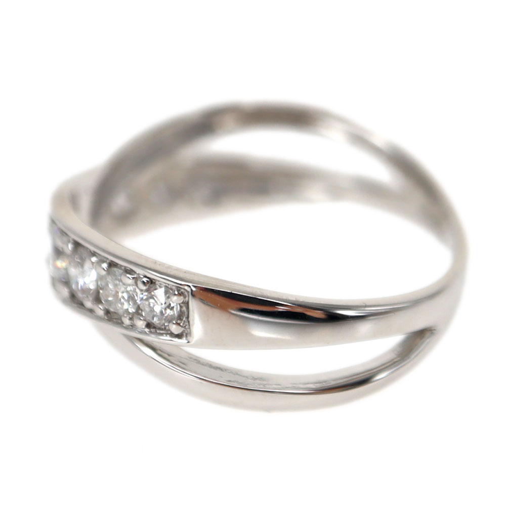 クロスに重なったように見えるリングのデザインが美しい指輪です。 プラチナの輝きに加え、埋め込まれたダイヤモンドがキラキラと輝きます。