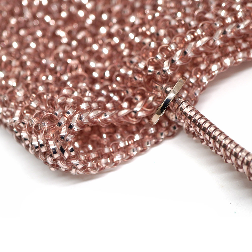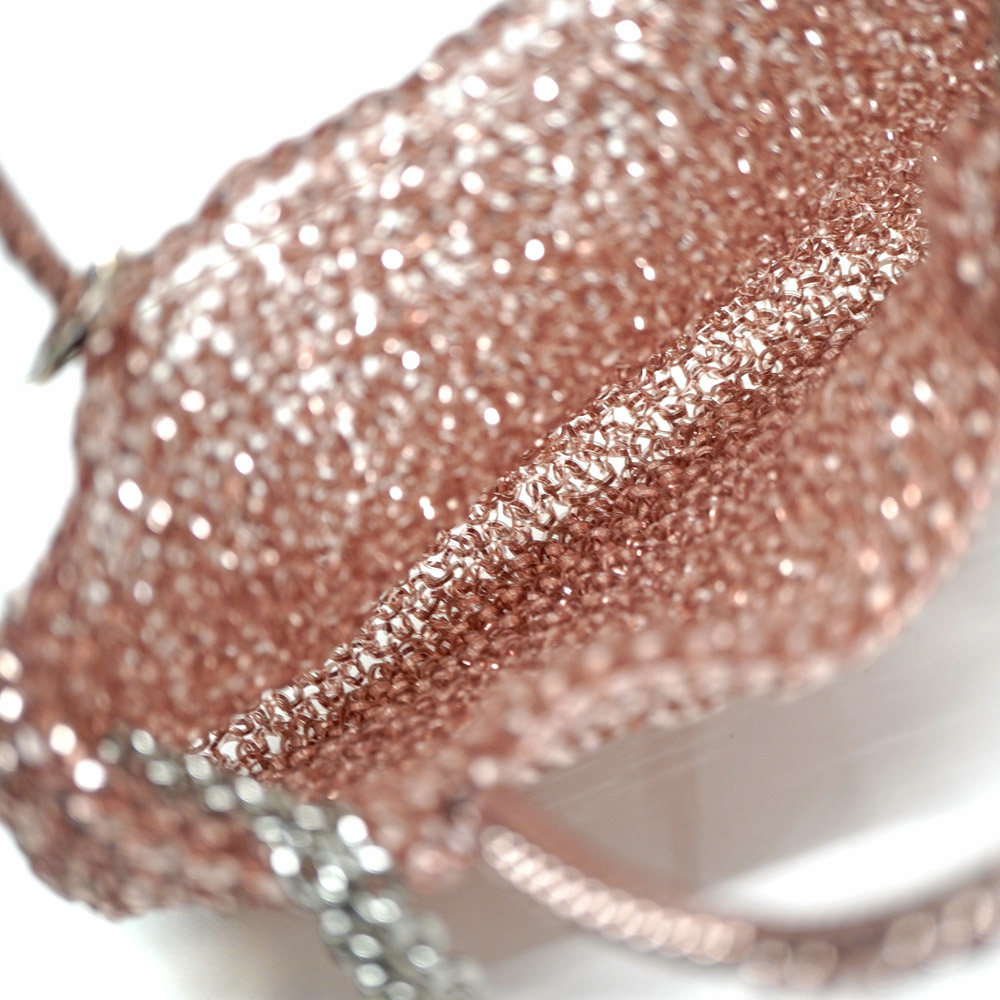 99.9%の純銀を使った特別な999 COLLECTION(999 コレクション)。 手編みの技によって、シルバーの紡ぐ永遠の物語を唯一無二の輝きで表現します。 可愛らしく上品なピュアシルバーピンクカラーでファッションのアクセントにもなります。 ショルダー付でショルダーバッグとしてもご使用いただけます。