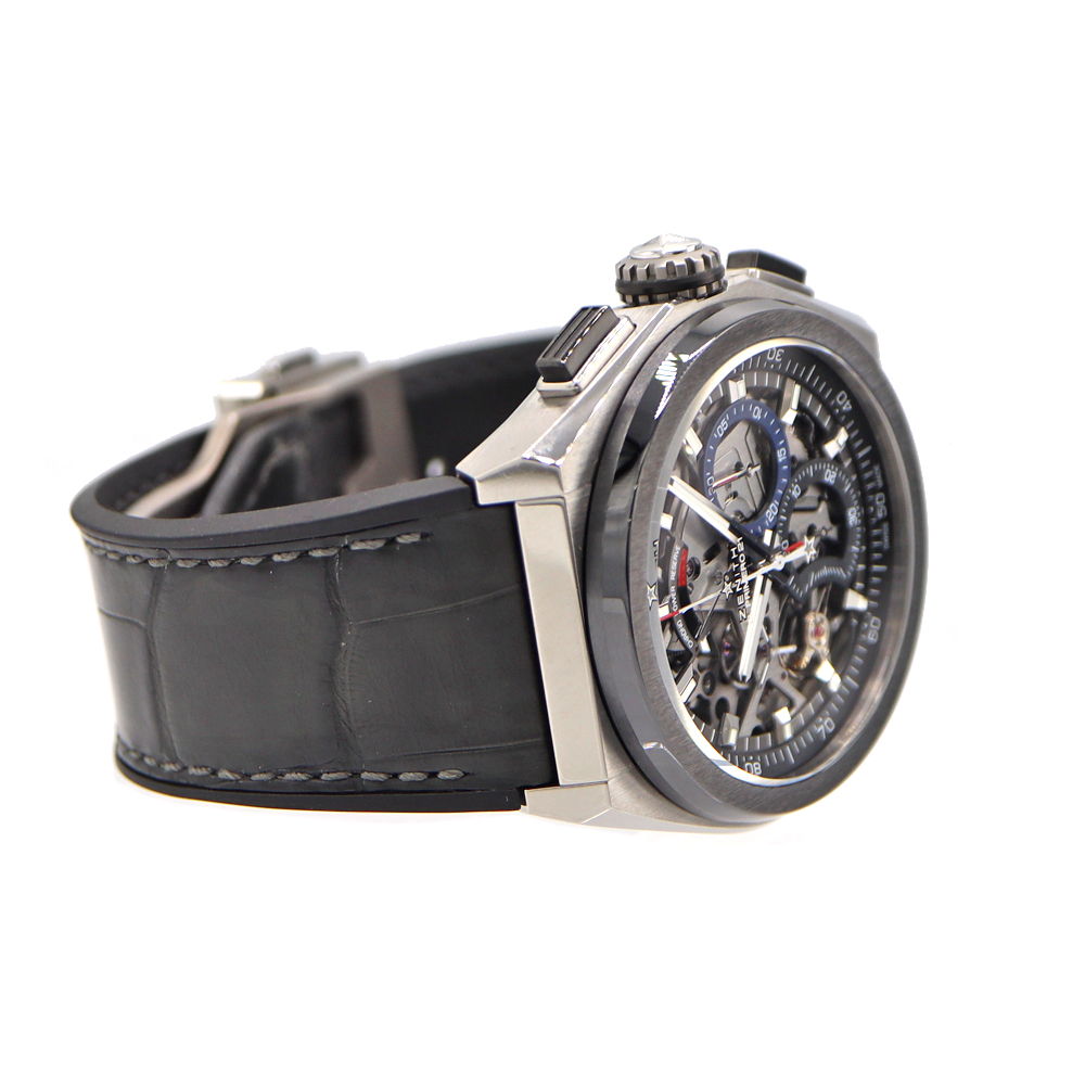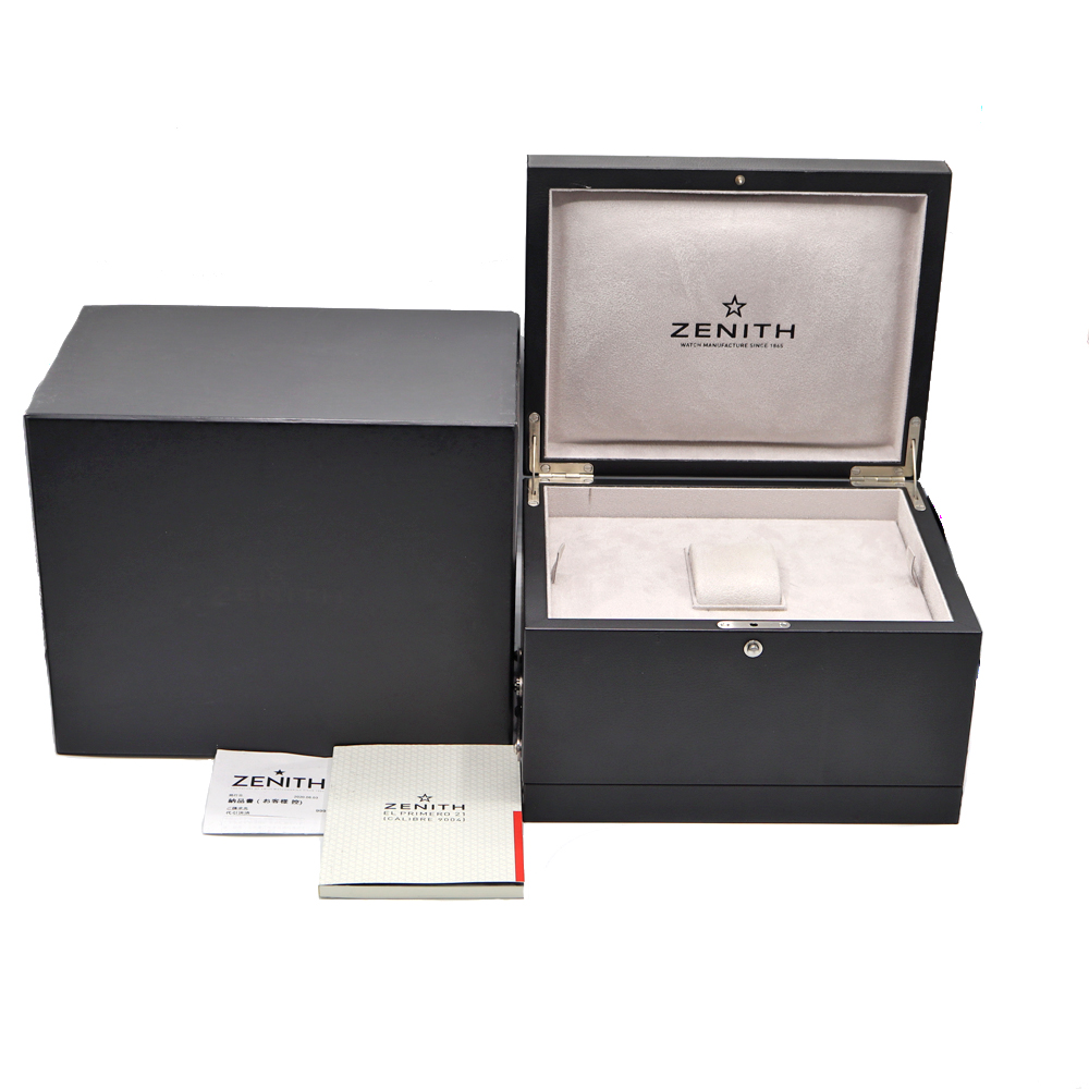 このモデルの大きな魅力は、1秒で針が1周し、1/100秒の計測が可能なクロノグラフ機能で、12時位置にはクロノグラフ専用のパワーリザーブインジケーターを備え、クロノグラフ用と時刻用でそれぞれ独立した脱進機を搭載した高度な構造を採用しています。 手巻きの際、「12時方向に回すとクロノグラフ用ゼンマイ」「6時方向に回すと時刻用ゼンマイ」を巻き上げる仕組みになっており、ゼニスならではのこだわりが随所に感じられます。