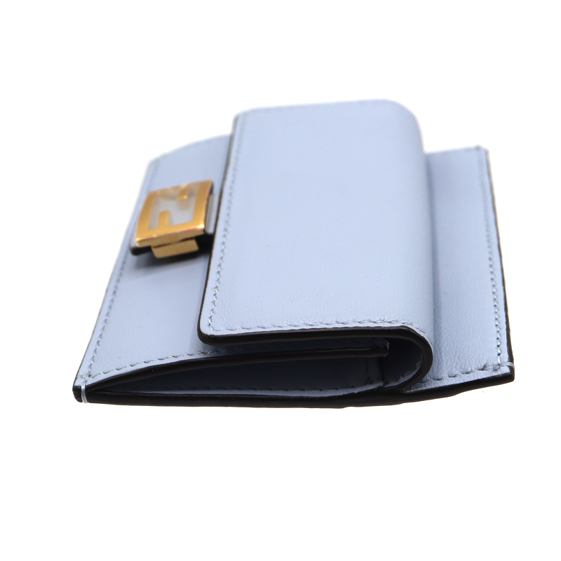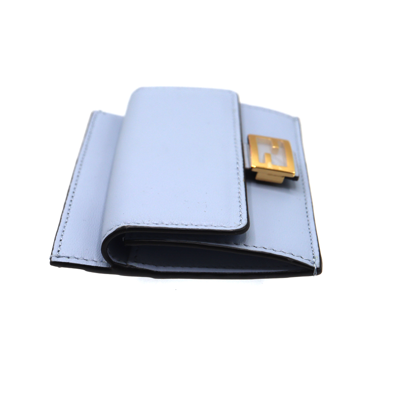 フェンディらしい上品さと可憐なカラーが魅力のライトブルーウォレット。