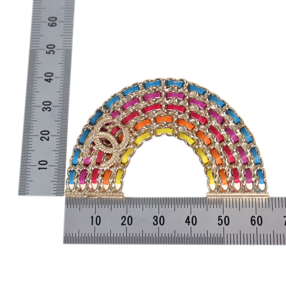 カラフルでポップな可愛らしい虹がモチーフになっている¥るブリーチです。 さりげなくココマークも付いていて、シャネルらしさも感じます。 コーディネートのワンポイントとしておすすめです。
