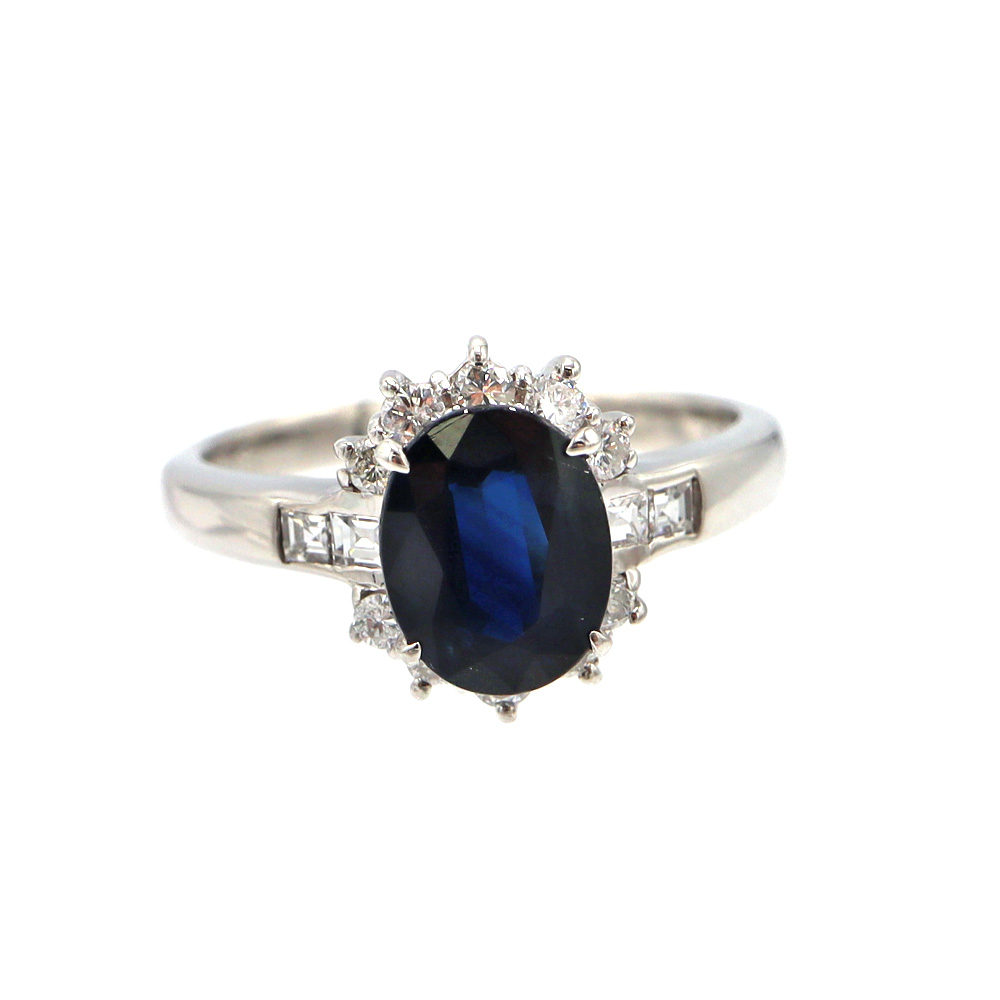 深みのあるブルーが美しいサファイア(1.81ct)を主役に、ダイヤモンド(0.43ct)が繊細に輝く上品なリングです。