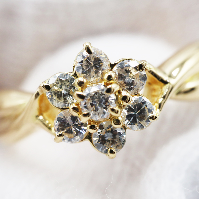 | 商品説明 | K18ダイヤモンドリングが入荷致しました。 【K18刻印有】 0.29カラットのダイヤモンドをあしらった、K18イエローゴールド製のリングです。