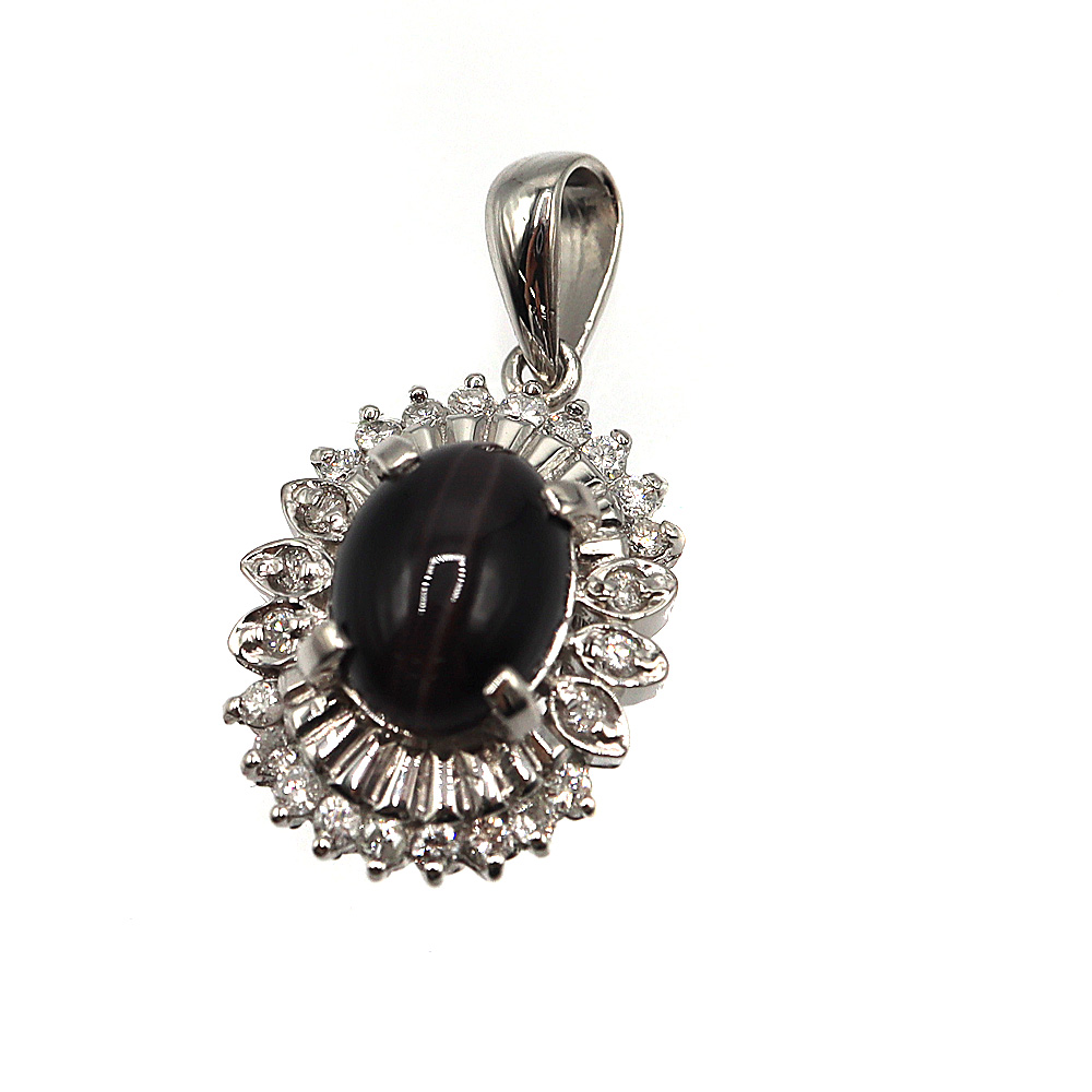希少石シリマナイト(2.67ct)の柔らかな輝きが印象的な、Pt900製ペンダントトップです。