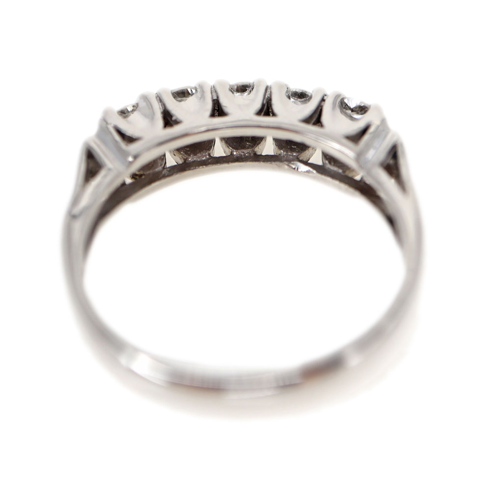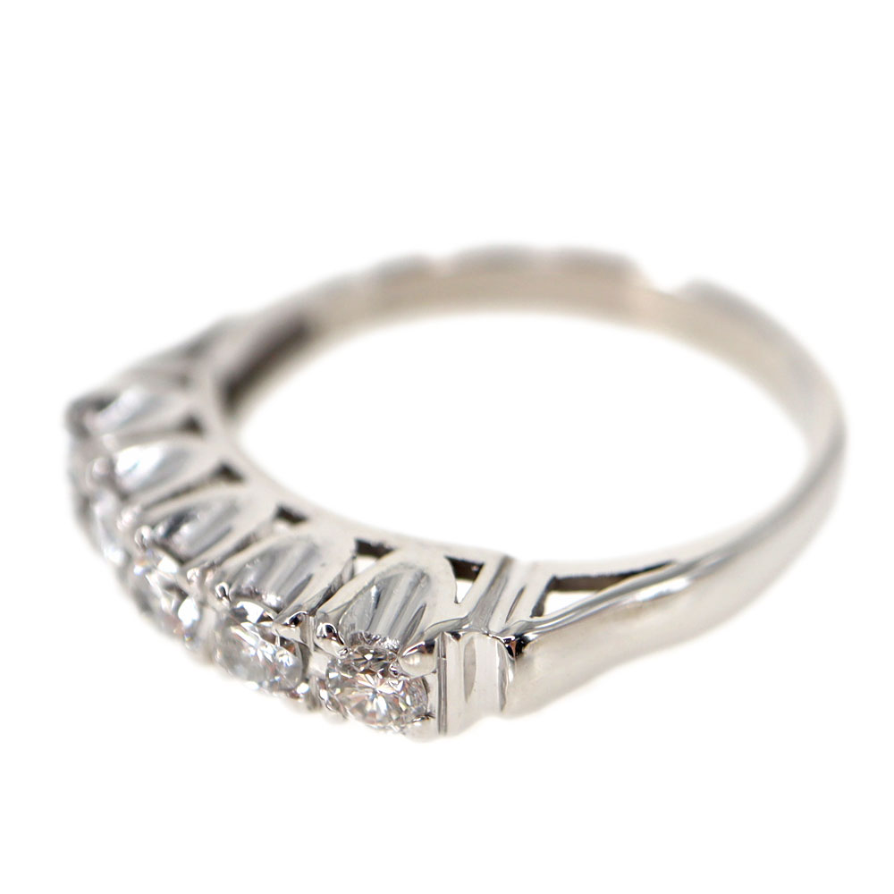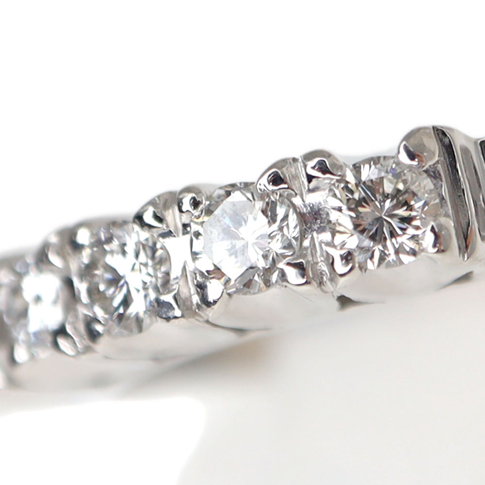 一列にセッティングされたダイヤモンドが美しい指輪です。 プラチナの輝きに加え、埋め込まれたダイヤモンドがキラキラと輝きます。