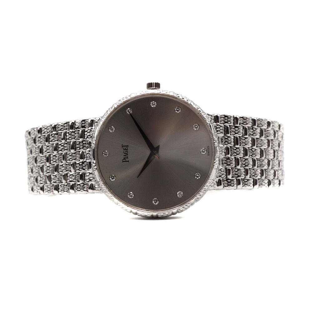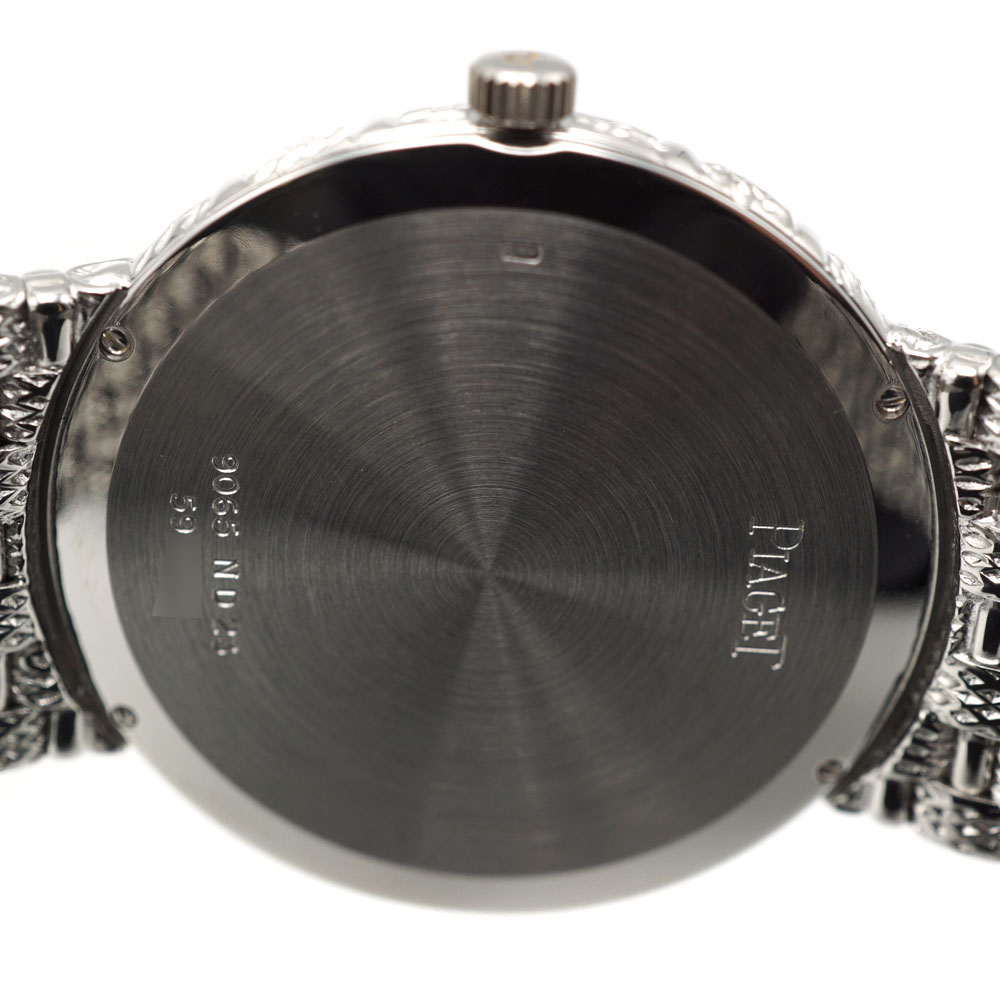 | 商品説明 | PIAGET【ピアジェ】9065 ND 23 K18WGの紹介です。 編み込みのようなブレスがラグジュアリーな印象を持たせてくれる一本です。 K18WGで出来ており、上品かつ重厚感のある手巻きの時計です。