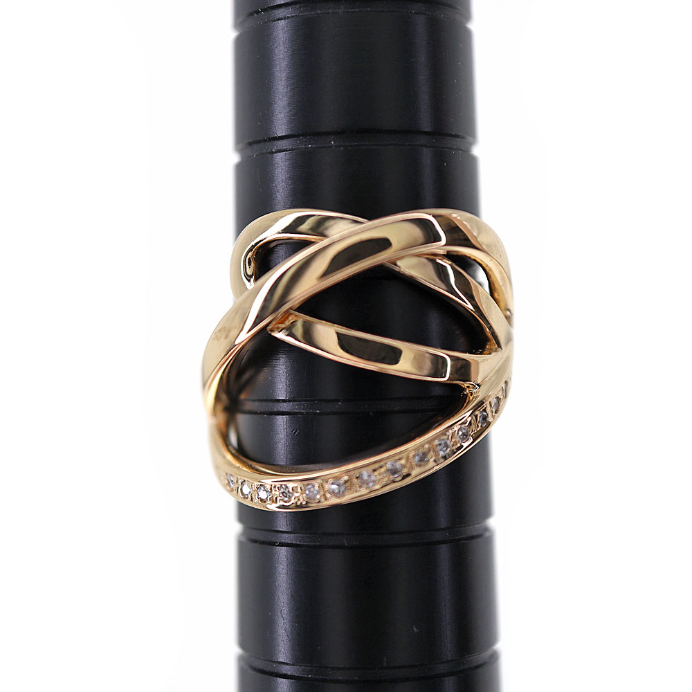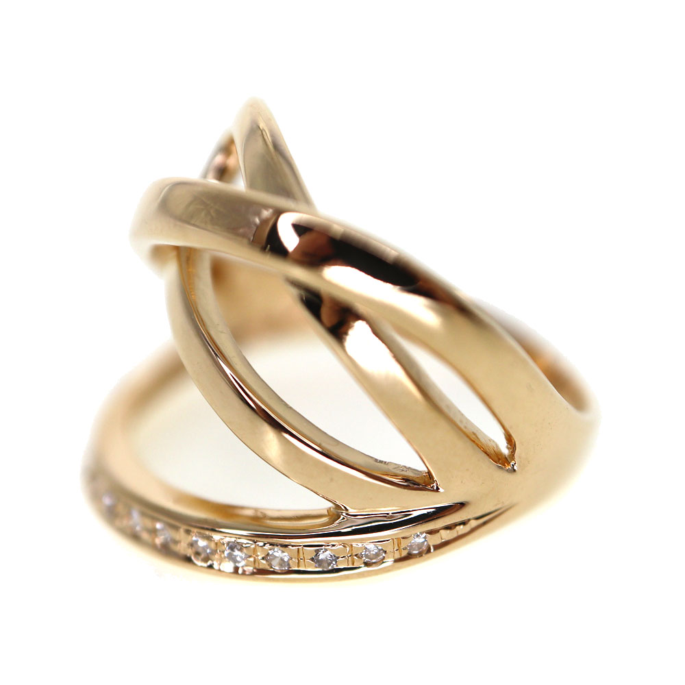 流れるように交差するデザインが美しいリングです。 さりげなく輝くダイヤモンドが手元を華やかに演出します。 この機会に是非いかがでしょうか。