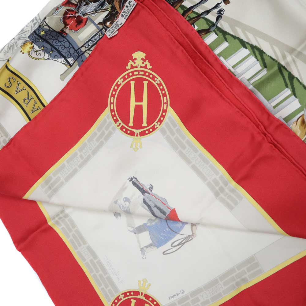 馬と、様々なシーンが切り抜かれたようなデザインが素敵なスカーフです。 レッド×ホワイトで目を惹くアイテム。 この機会に是非いかがでしょうか。