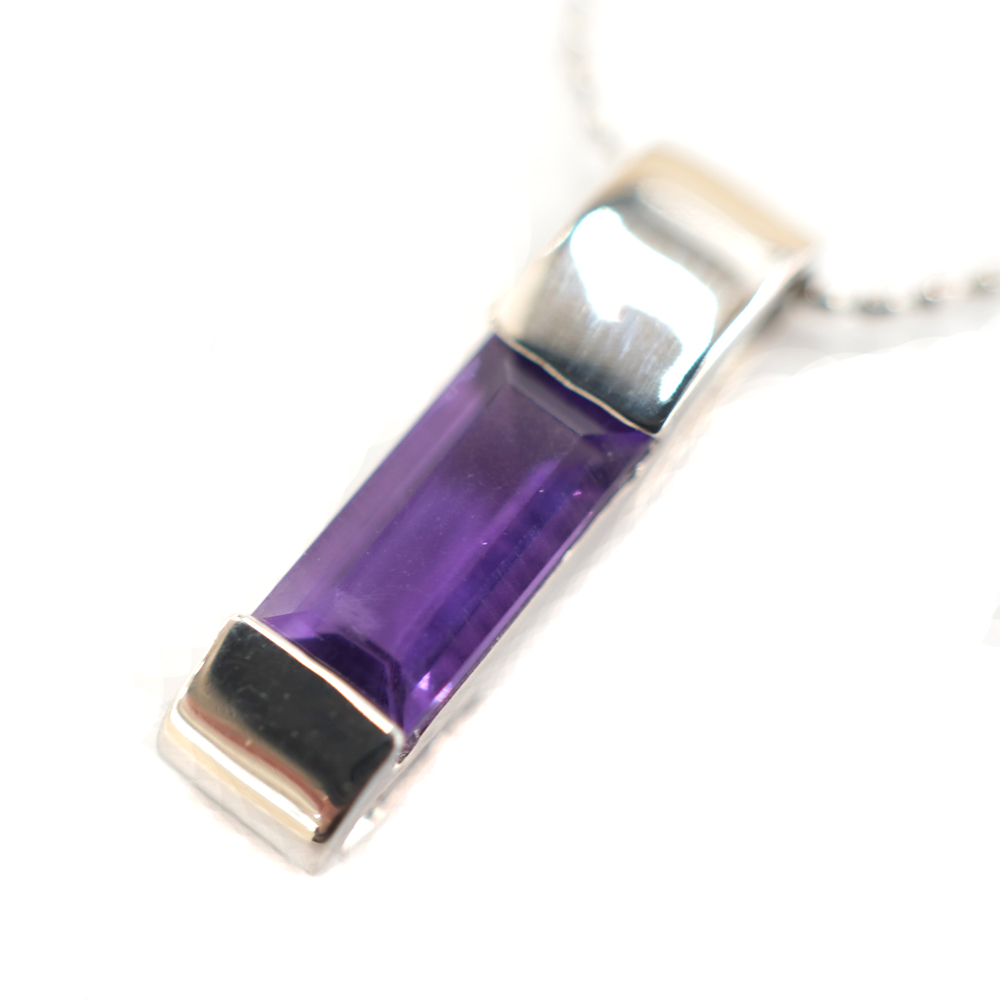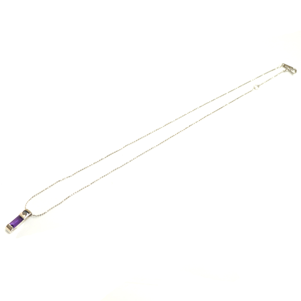 アメジストが施された上品なネックレスです。 首元のアクセントにおすすめです。 お探しの方はこの機会に是非いかがでしょうか。
