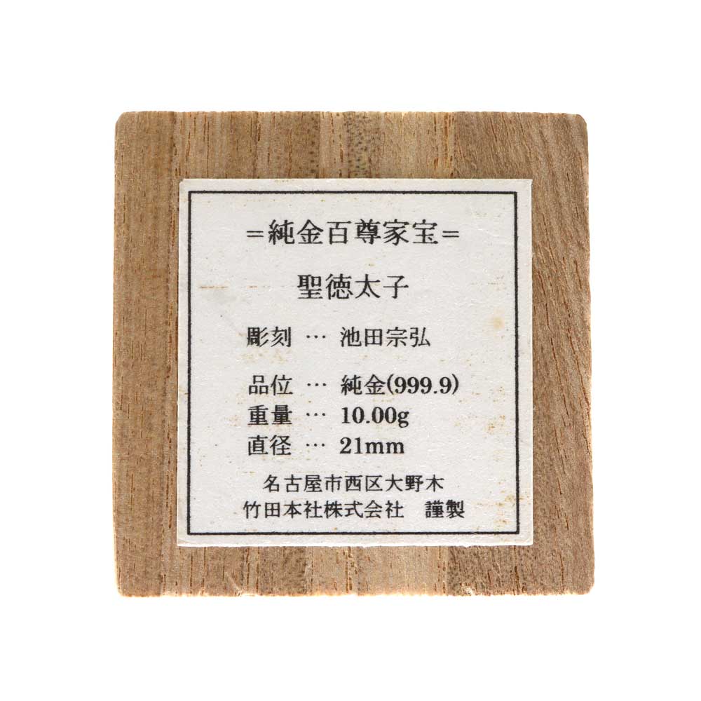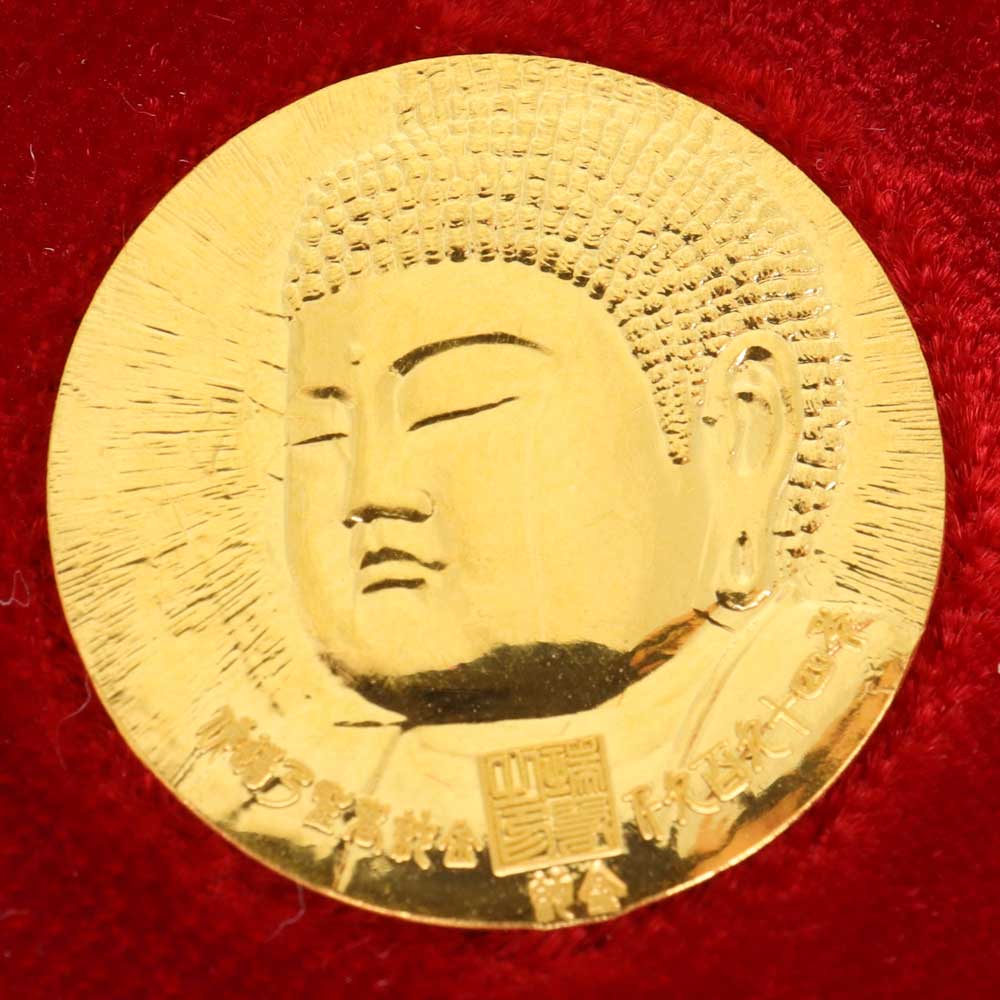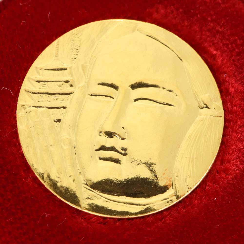 純金イエローゴールドで作られたメダル。 表には聖徳太子、裏には大仏がそれぞれ彫刻されたデザインです。 コレクション等におすすめのお品物となっております。 この機会に是非いかがでしょうか。